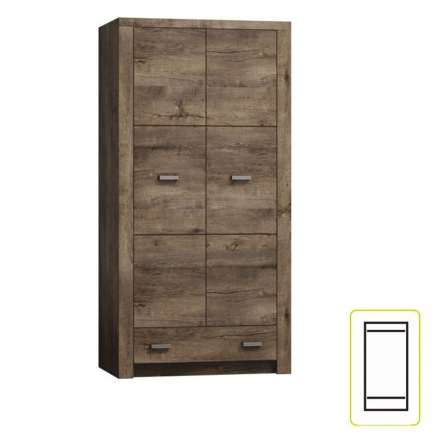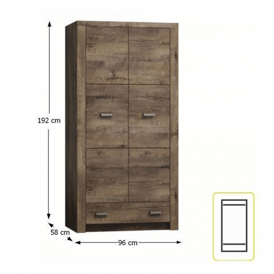 Skříň 01 z luxusního sektorového nábytku Korpus hrubý až 48 mm, Tloušťka materiálu: 48 mm Tloušťka materiálu zbývající části: 16 mm úchytky kovové Materiál DTD laminovaná, ABS hrany, Barevné provedení: jasan tmavý Rozměry ŠxHxV: 96x58x192 cm. Dodávané v demontu.