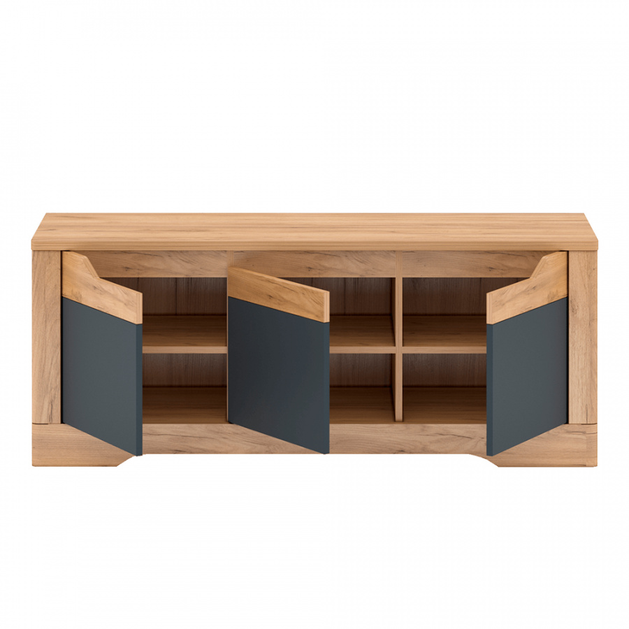 Materiál: DTD laminovaná / MDF Barva: dub craft zlatý /grafit šedá Rozměry (ŠxHxV): 135,2x42x54,5 cm Tloušťka materiálu korpus: 16 mm Tloušťka materiálu vrchní deska: 22 mm tři skříňky Dodávané v demontu