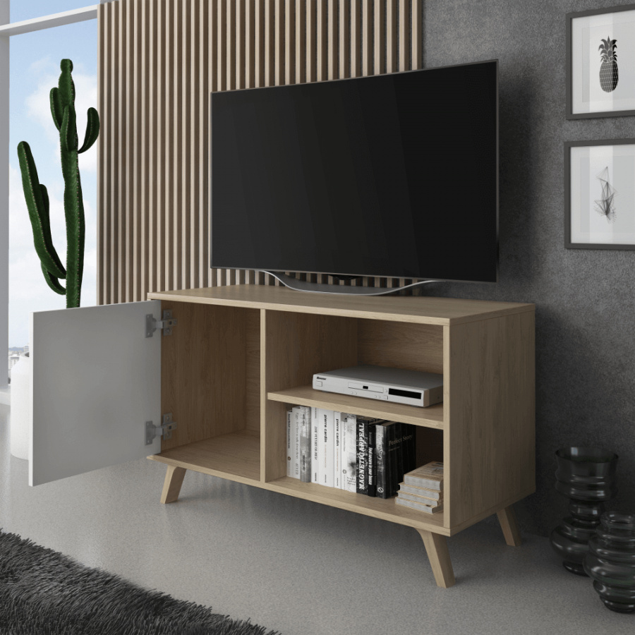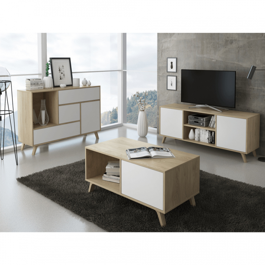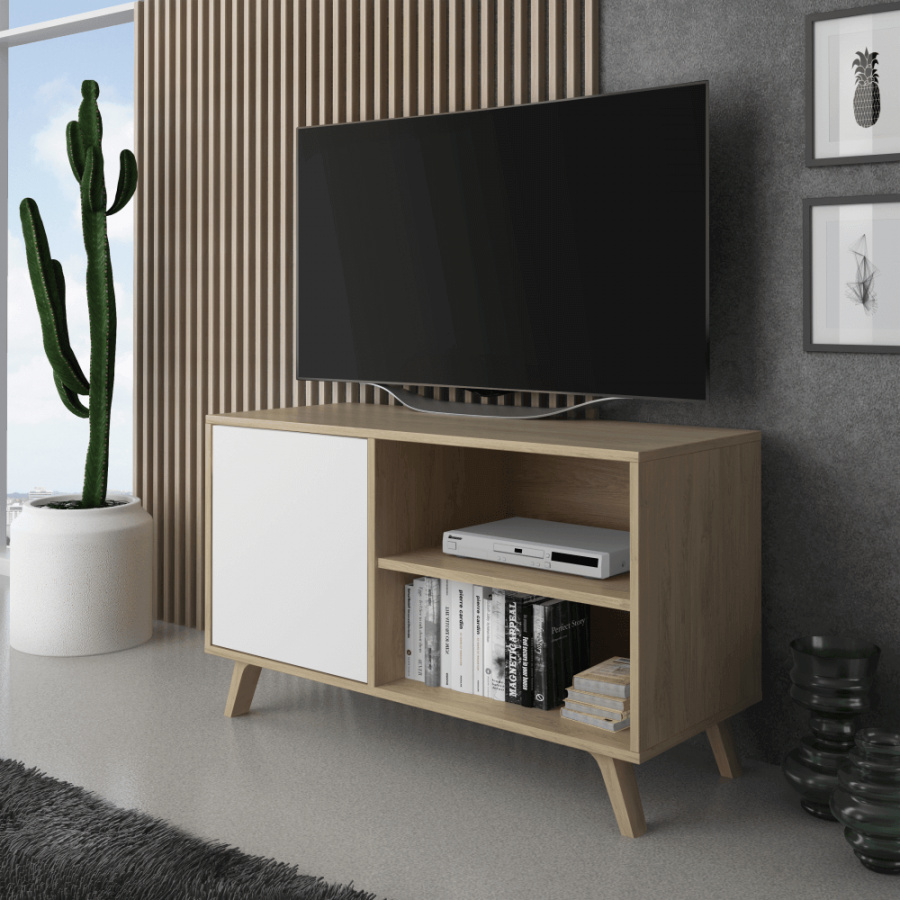 Materiál: DTD laminovaná Barva: dub puccini / bílá Rozměry (ŠxHxV): 91,5x39,6x56,9 cm skříňka Otevřený úložný prostor Dotykový systém PUSH UP Plastové nožičky Výška spodního prostoru od podlahy: 12 cm skandinávský styl Dodávané v demontu