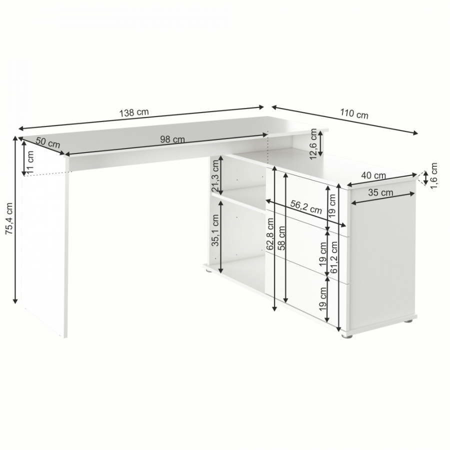 Rohový PC stůl TERINO