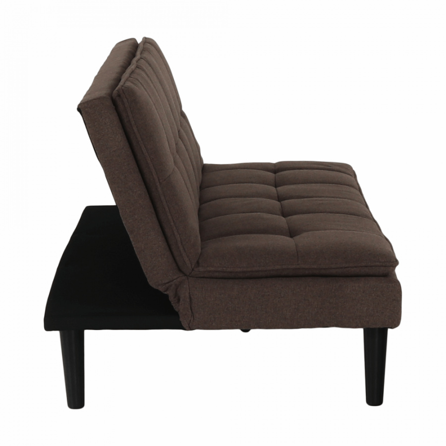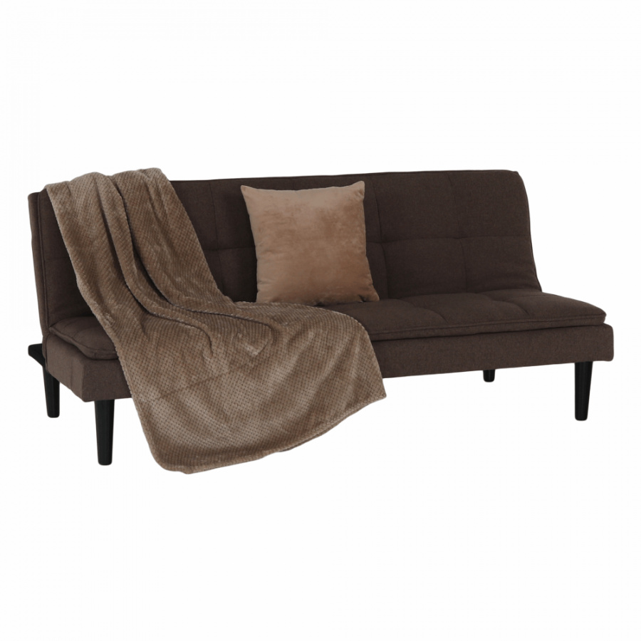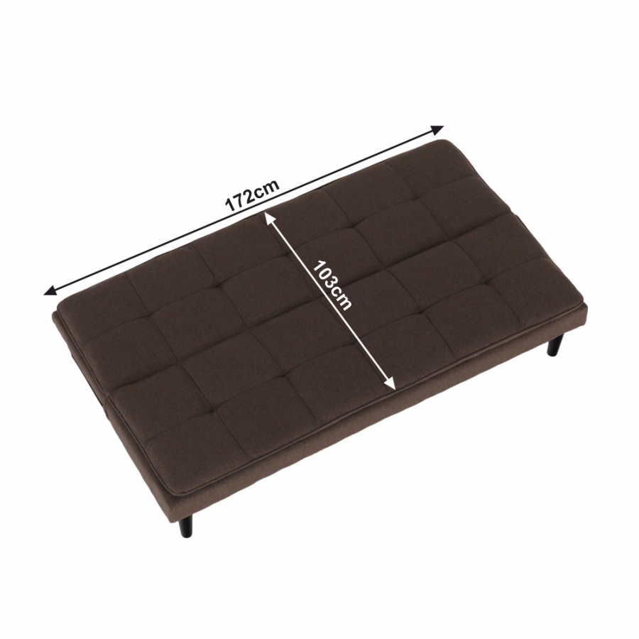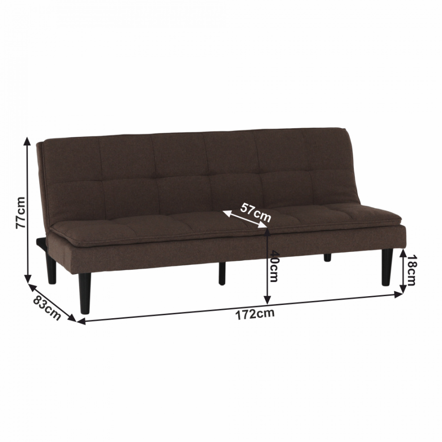 Materiál: látka/dřevo Provedení: hnědá/černá Rozměry (ŠxHxV): 172x83x77 cm Plocha na spaní (ŠxD): 103x172 cm Výška sedu: 40 cm Hloubka sedu: 57 cm Výška spodního prostoru od podlahy: 18 cm rozkládací molitanová výplň Dodávané v demontu.