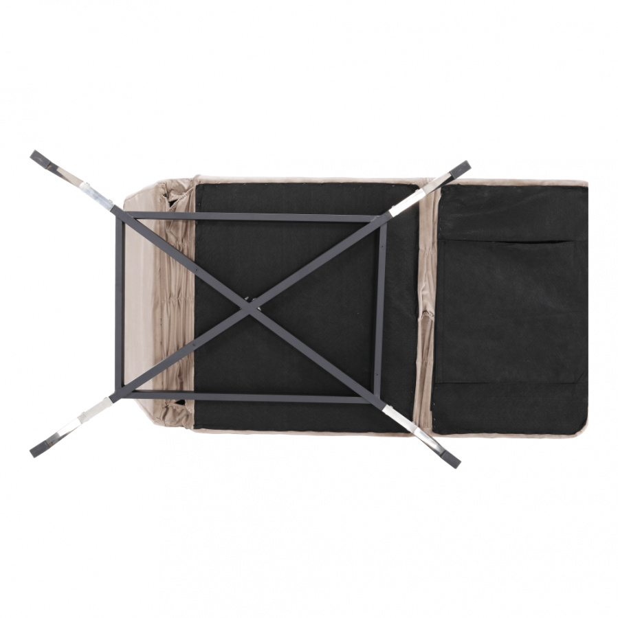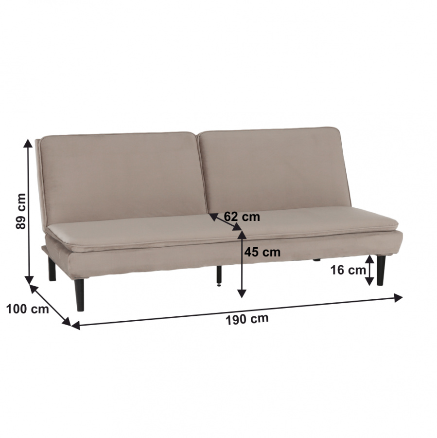 Materiál: látka Velvet / chrom Barva: šedohnědá TAUPE / černá Rozměry (ŠxHxV): 190x100x89 cm Plocha na spaní (ŠxD): 190x120 cm Výška sedu: 45 cm Hloubka sedu: 62 cm Výška spodního prostoru od podlahy: 16 cm rozkládací molitanová výplň Dodávané v demontu
