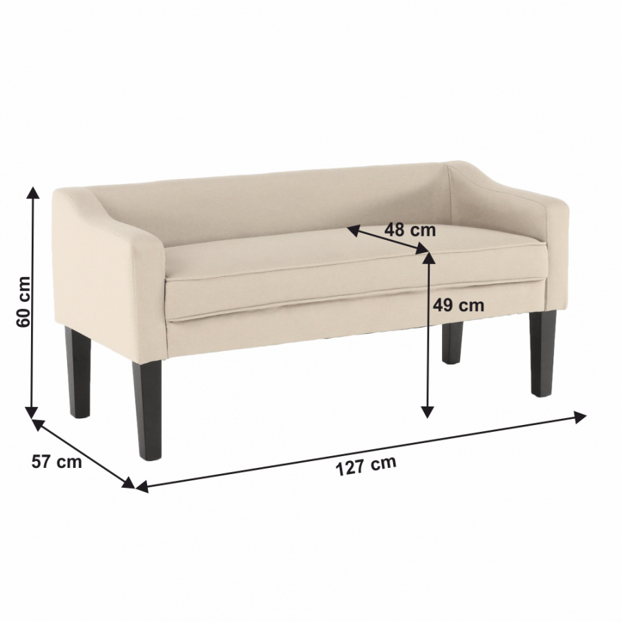 Materiál: látka / dřevo Barva: béžová/černá Rozměry (ŠxHxV): 127x56x60 cm Výška sedu: 49 cm Hloubka sedu: 48 cm moderní vysokokvalitní pěna Dodávané v demontu
