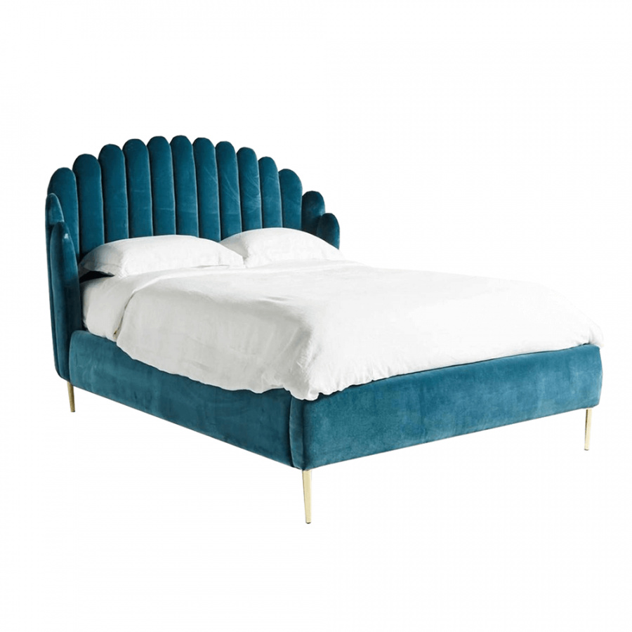 Materiál čalounění: Velvet látka Barva čalounění: petrolejová Materiál nohy: kov chrom Barva nohy: gold zlatý matný Rozměry (ŠxHxV): 150x210x110 cm Plocha na spaní (ŠxH): 140x200 cm Výška po rošt: 28 cm Dodávané s lamelovým roštem Nosnost na jedno lůžko: 110 kg kovové nohy Dekorativní šití čela Dodávané bez matrace Možnost zakoupit matrace z naší nabídky Dodávané v demontu