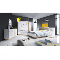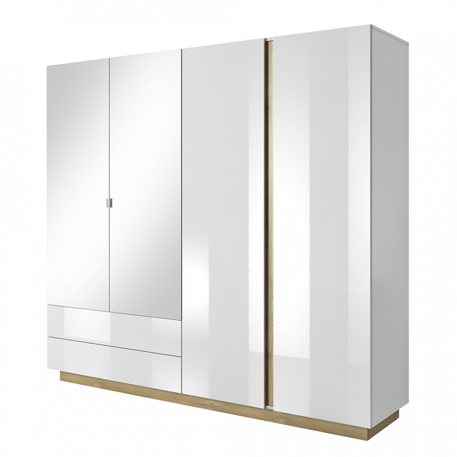 Skříň se zrcadlem, bílá/dub grandson/bílý lesk, CITY