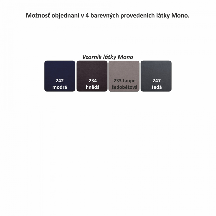 Materiál: látka Mono Barva: 244 světlešedá Rozměry (ŠxHxV): 180x211x118 cm Plocha na spaní (ŠxD): 180x200 cm Výška plochy na spaní: 65 cm S úložným prostorem vysoké čelo Matrace s jednou vrstvou z bonelových pružin Toper s výškou 5 cm Dodávané v demontu Možnost objednání iv jiných barevných provedeních látky Mono za cenu 28.190 Kč-160x200 a 180x200 -29.260 Kč. Doba dodání 14-17 týdnů. Zalíbila se vám postel Fonda, ale nevyhovuje vám rozměr? Nabízíme možnost objednání v rozměru lůžka 90x200 cm za cenu 17.760 Kč a v rozměru 140x200 cm za cenu 27.170 Kč. Doba dodání 14-17 týdnů. Upozorňujeme, že při objednávkách na nábytek v jiném barevném provedení, jak máme běžně skladem, neumíme zaručit doručení do Vánoc. Totéž platí i při nábytku označeném na objednávku