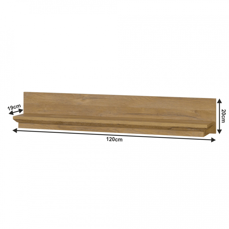 Materiál: DTD laminovaná / ABS hrany Barva: dub grand Rozměry (ŠxHxV): 120x19x20 cm Tloušťka materiálu: 40 mm Otevřený úložný prostor elegantní Dodávané v demontu
