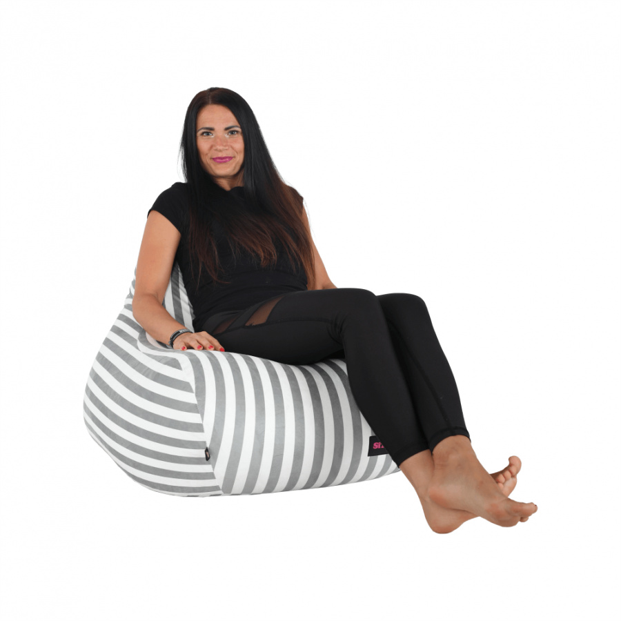 Materiál: látka / EPS EPS-polystyrenové kuličky Barva: bílá / šedá Rozměry (ŠxHxV): 75x75x60 cm Objem výplně: 150 L Nosnost: 90 kg Dodávané v monte