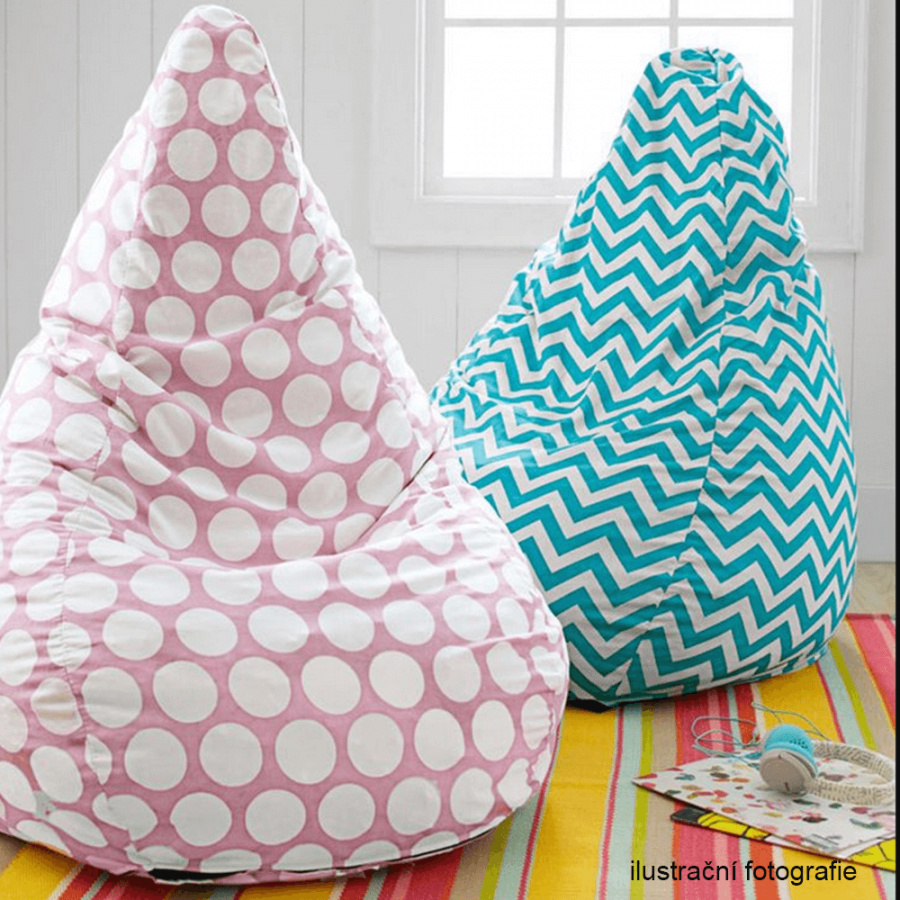 Sedací vak Materiál: látka / EPS (polystyrenové kuličky) Provedení: růžovo-fialová / vzor Rozměry (ŠxHxV): 75x75x110 cm Nosnost: 90 kg Objem 200 litrů Dodávané v monte.