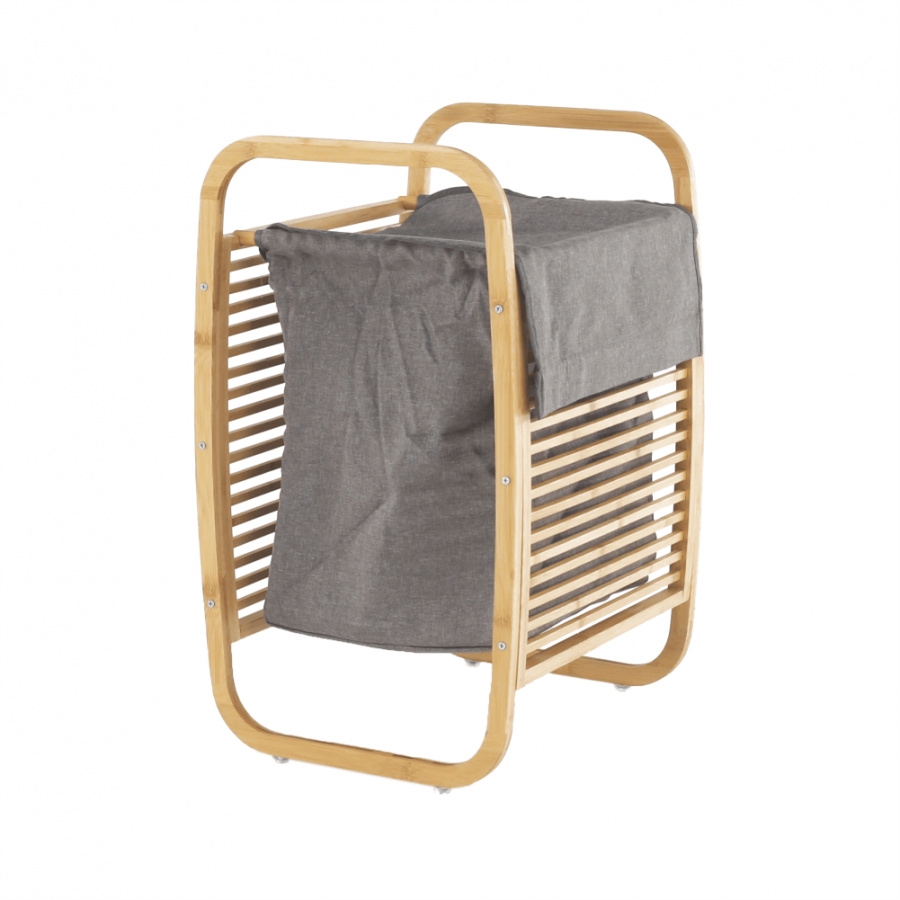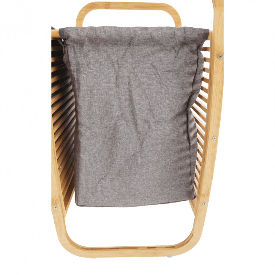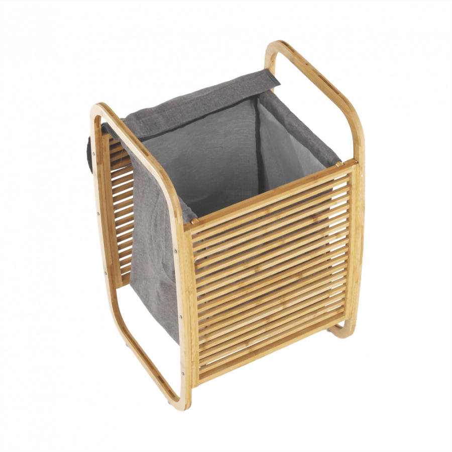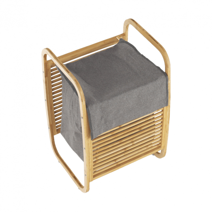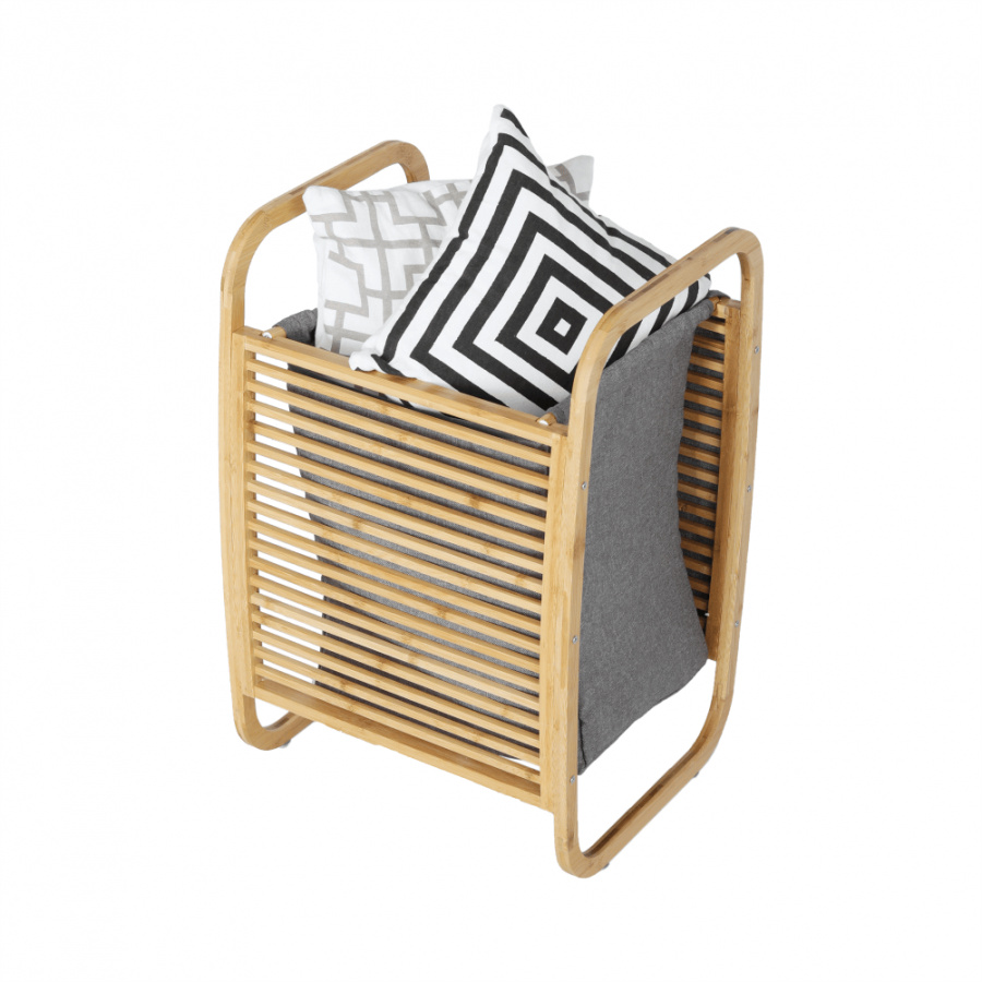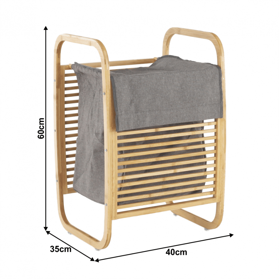 Materiál: bambus lakovaný / látka Barva: přírodní / šedá Rozměry (ŠxHxV): 40x35x60 cm Vnitřní rozměry (ŠxHxV): 35x30x40 cm Vyjímatelné látkové pytel Látkové vnitřek lze prát v pračce 30 ° C Odvětrávaný úložný prostor Nosnost: 20 kg Dodávané v monte