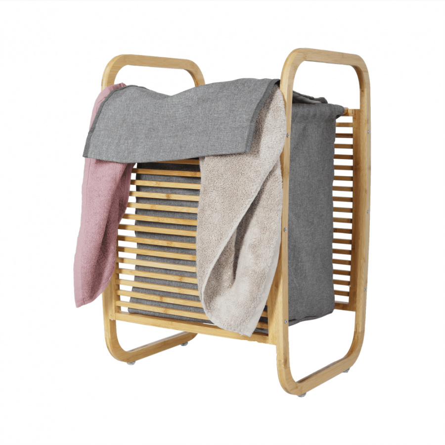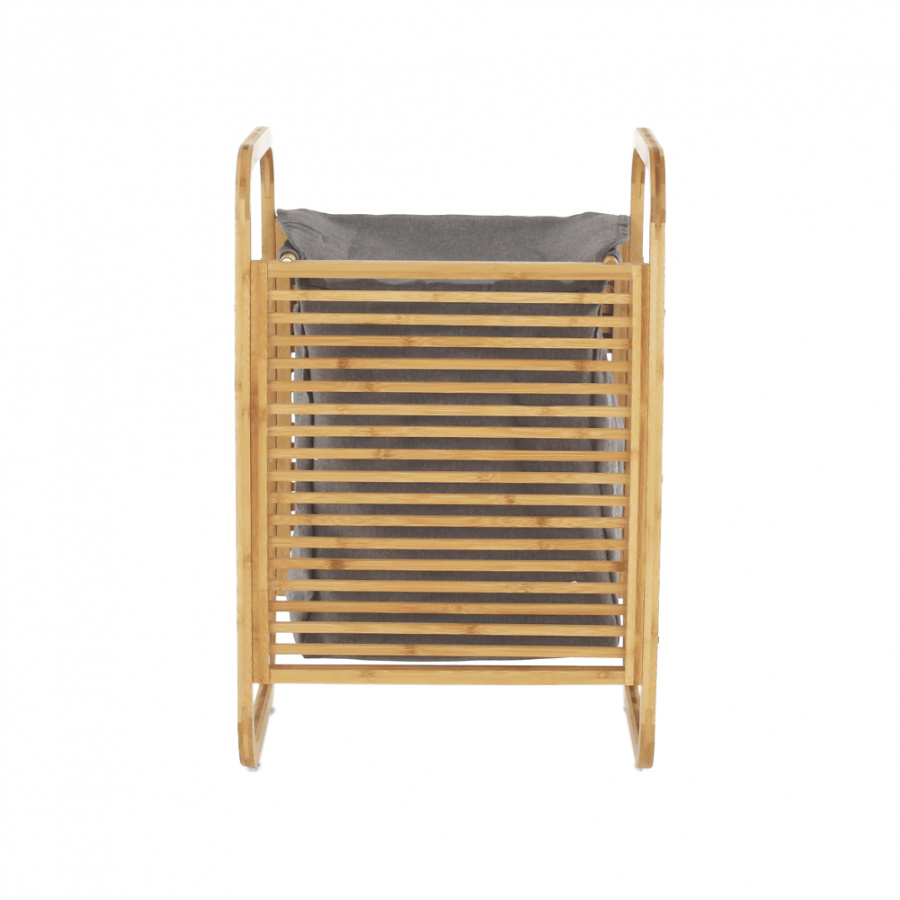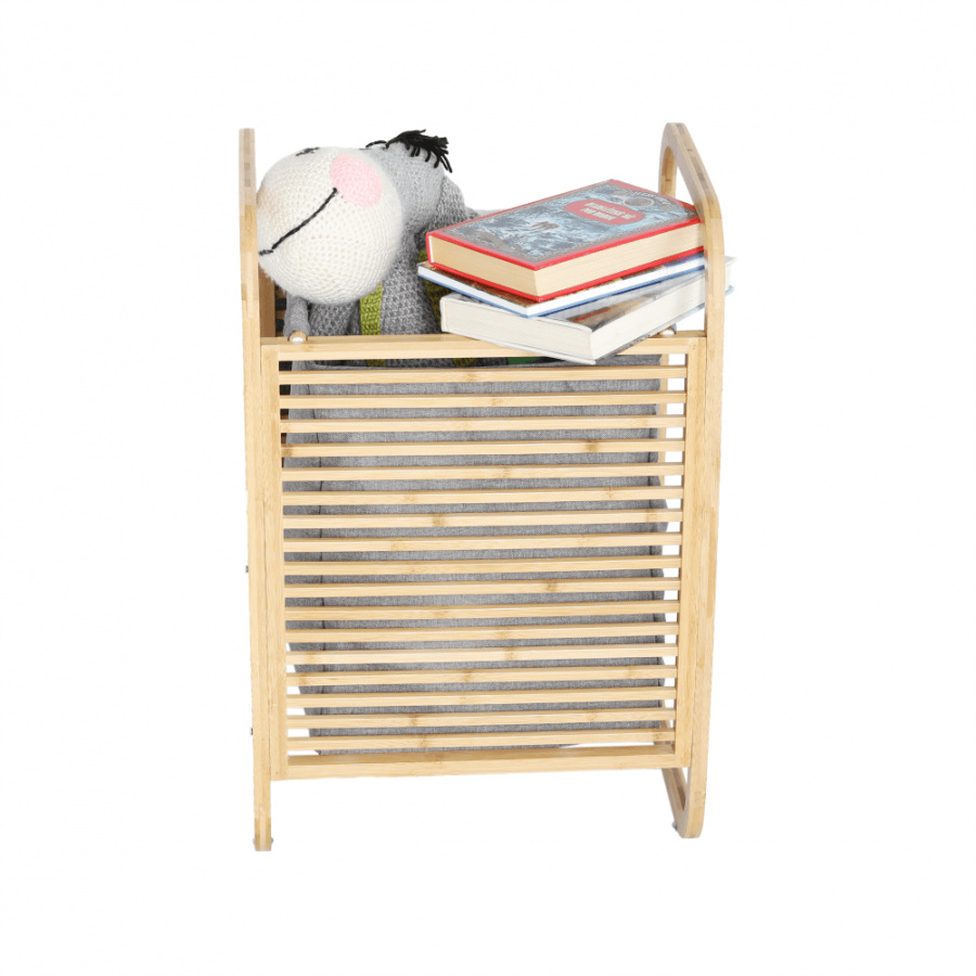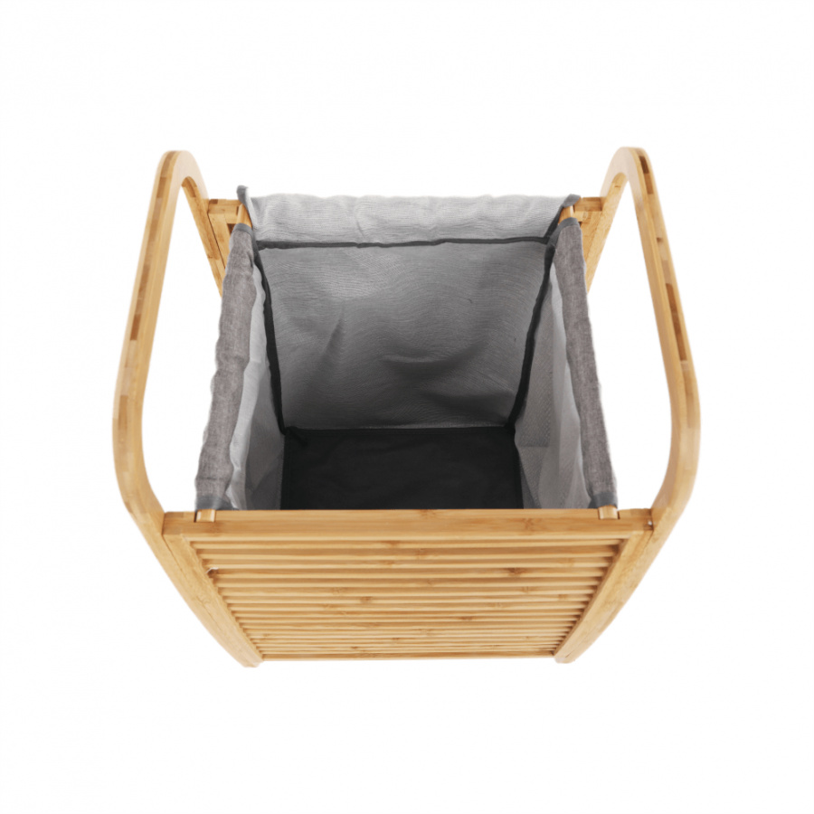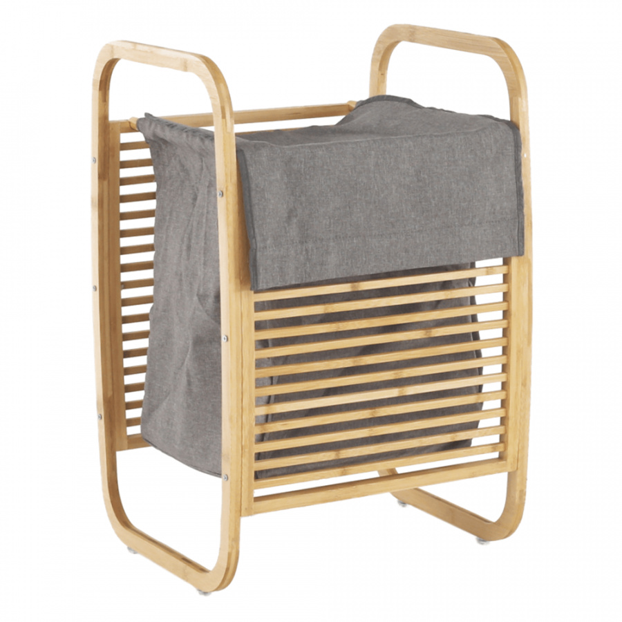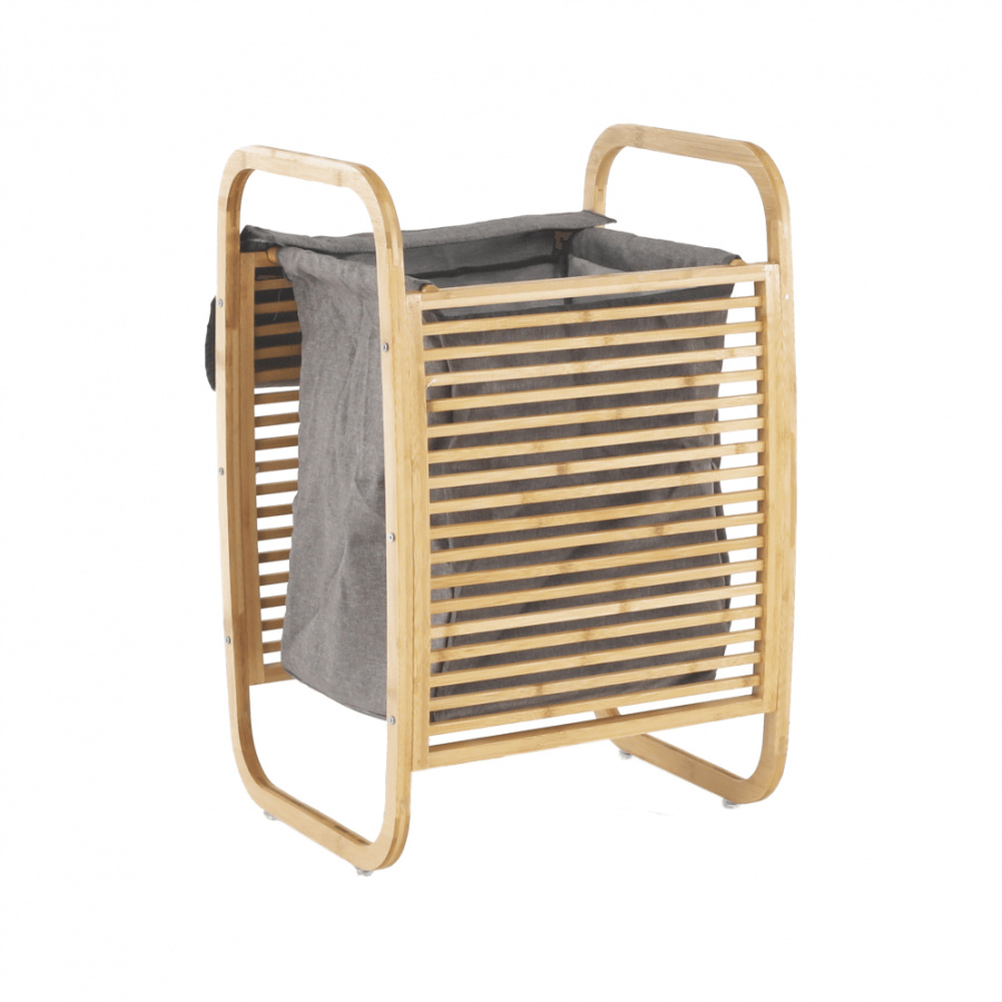 Materiál: bambus lakovaný / látka Barva: přírodní / šedá Rozměry (ŠxHxV): 40x35x60 cm Vnitřní rozměry (ŠxHxV): 35x30x40 cm Vyjímatelné látkové pytel Látkové vnitřek lze prát v pračce 30 ° C Odvětrávaný úložný prostor Nosnost: 20 kg Dodávané v monte