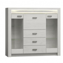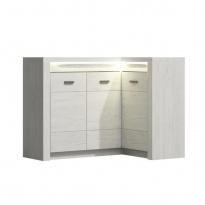 Police 11 z luxusního sektorového nábytku Korpus hrubý 16/ 48 mm, úchytky kovové Materiál DTD laminovaná, ABS hrany, barevné provedení: jasan bílý Rozměry ŠxHxV: 120x18x32 cm. Dodávané v demontu.