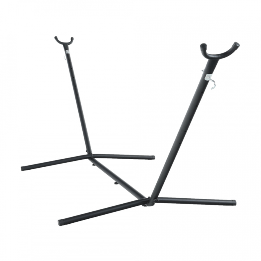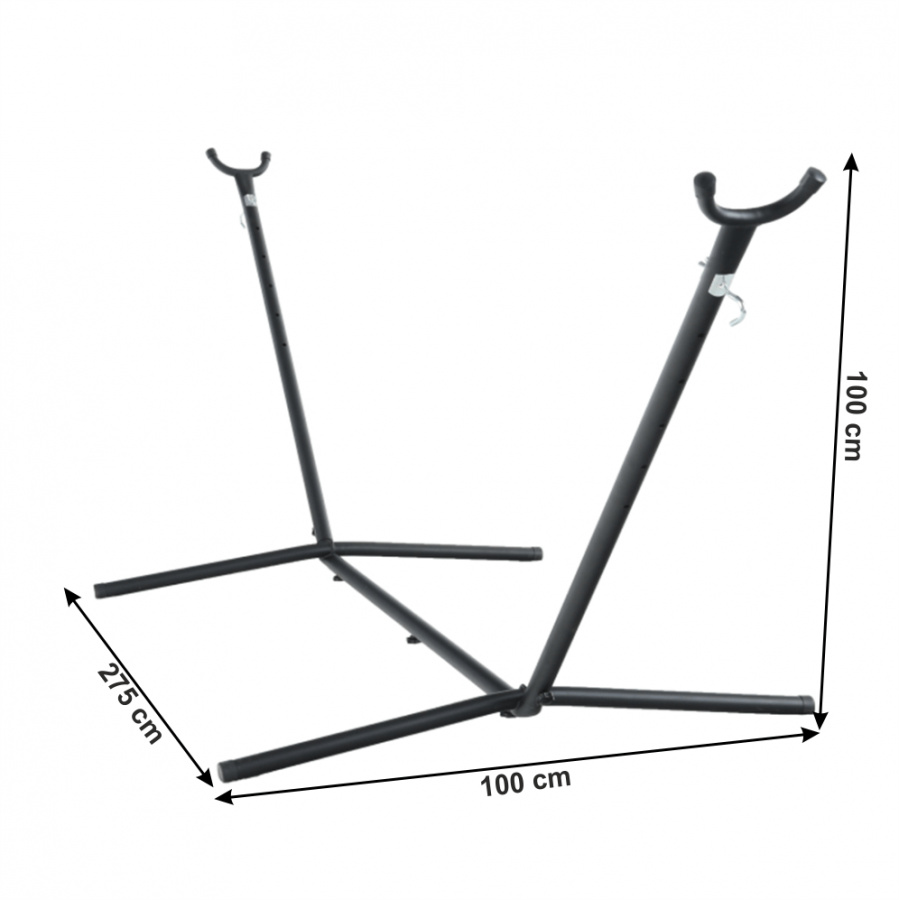 Zahradní stojan na houpací síť OTAN NEW TYP 3 Materiál: ocel Barva: černá Rozměry (ŠxHxV): 275x100x100 cm Maximální zatížení: 180 kg Dodávané v praktickém obalu. Dodávané v demontu.