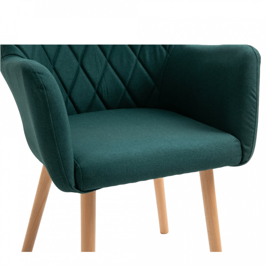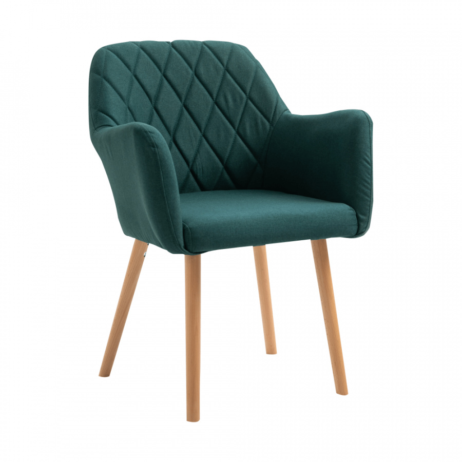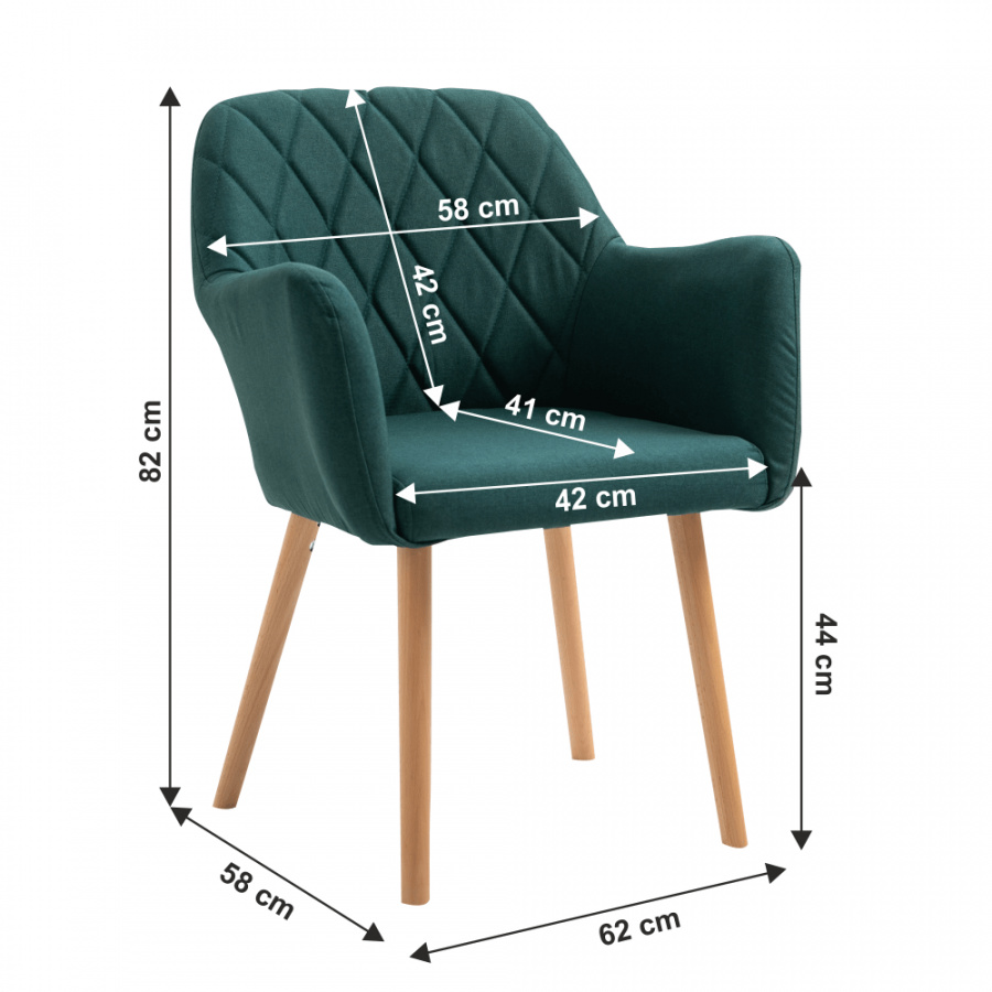 Materiál: látka / dřevo Barva: smaragdová / buk Rozměry (ŠxHxV): 62x58x82 cm Výška sedu: 44 cm Hloubka sedu: 41 cm Šířka sedu: 42 cm Šířka zádové opěrky: 58 cm Výška zádové opěrky: 42 cm Nosnost: 110 kg dekorativní šití Dodávané v demontu