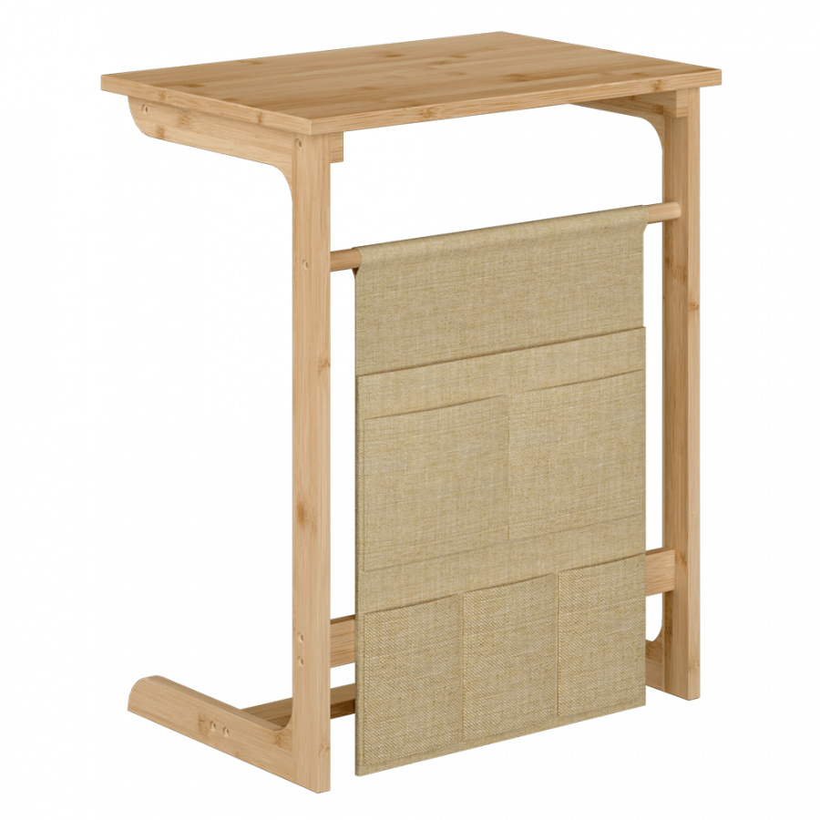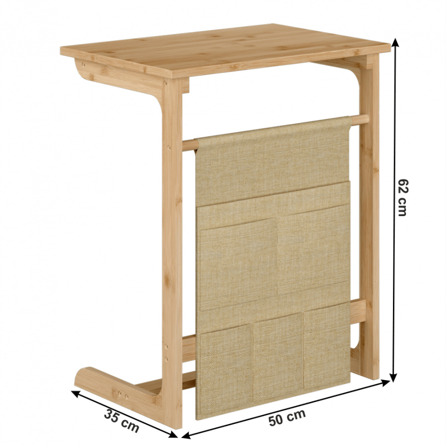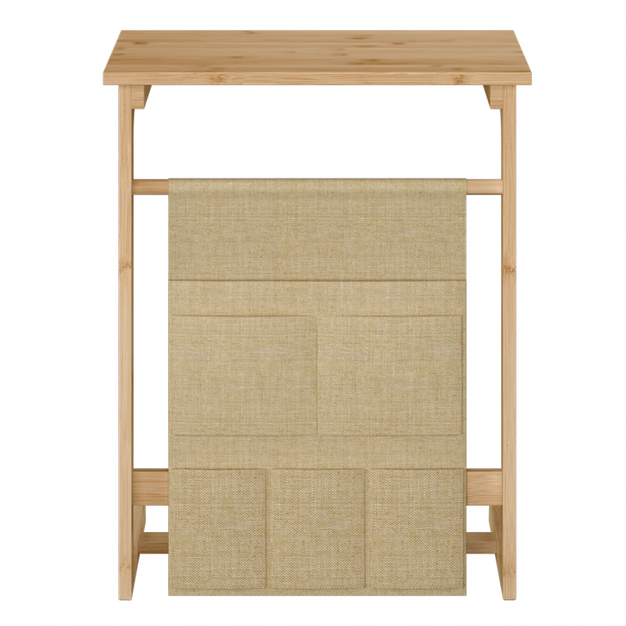 Materiál: lakovaný bambus / látka Barva: přírodní / světlehnědá Rozměry (ŠxHxV): 50x35x62 cm S odkládacími kapsami moderní design Dodávané v demontu