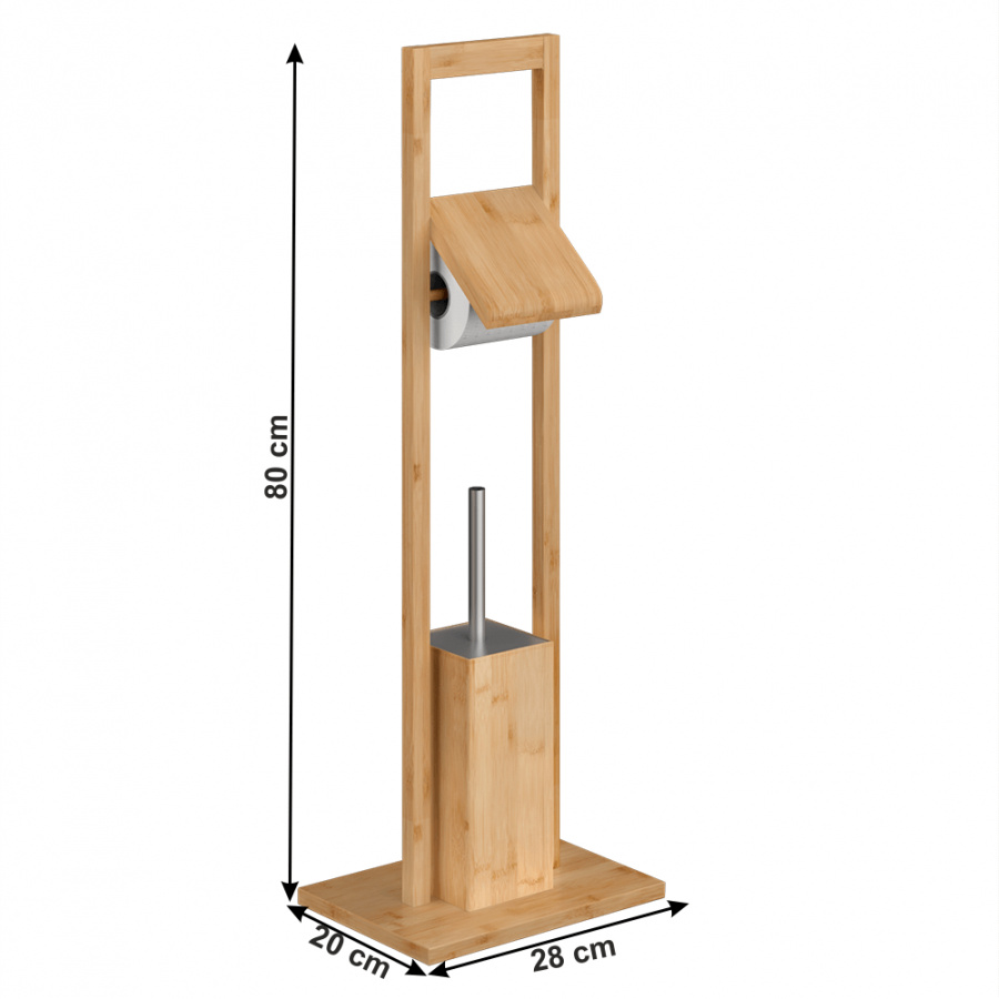 Materiál: lakovaný bambus Barva: přírodní Rozměry (ŠxHxV): 28x20x80 cm S držákem na toaletní papír WC kartáč moderní design praktický Dodávané v demontu.