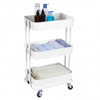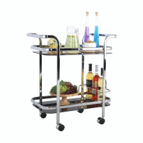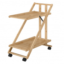 Materiál: lakovaný bambus / ocel Barva: přírodní / černá Rozměry (ŠxHxV): 50x28x70 cm Nosnost: 5 kg na polici 3 police servírovací na kolečkách Dvě kolečka s brzdami Dodávané v demontu