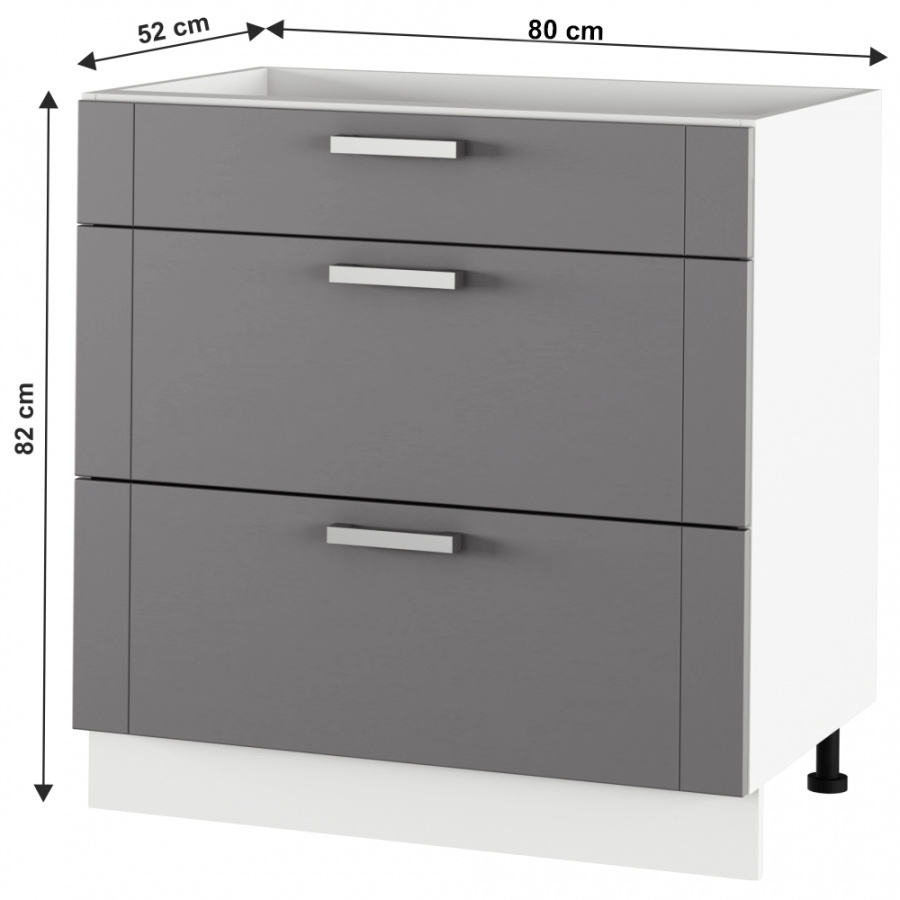 Materiál skříňka: DTD laminovaná / MDF Barva skříňka: tmavě šedá / bílá Materiál úchytky: kov Barva úchytky: matný chrom Rozměry (ŠxHxV): 80x52x82 cm Tloušťka materiálu: 16 mm s šuplíky S nožičkami S kovovou úchytkou Kvalitní slovenský výrobek Dodávané v demontu Skříňky jsou dodávány bez pracovní desky. Pracovní desku v provedení gold craft oak v tloušťce 38 mm je možné doobjednat. Cena za pracovní desku je 1.150 Kč za bm - tloušťka 38 mm.