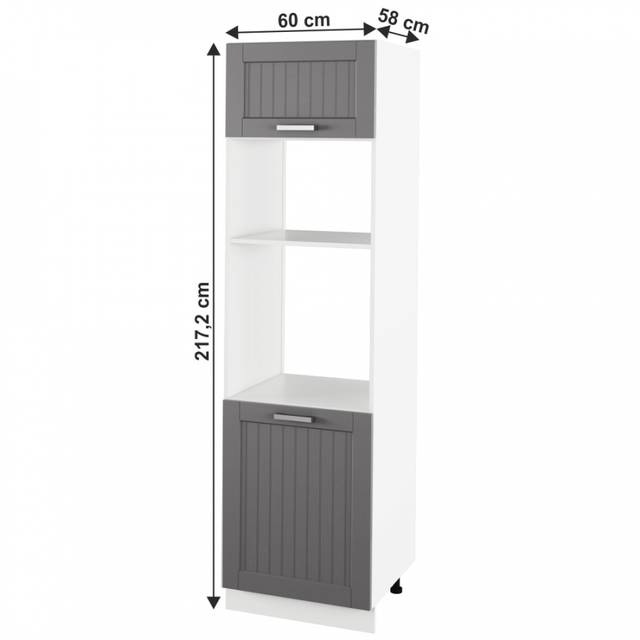 Materiál skříňka: DTD laminovaná / MDF Barva skříňka: tmavě šedá / bílá Materiál úchytky: kov Barva úchytky: matný chrom Rozměry (ŠxHxV): 60x58x217,2 cm Vnitřní rozměr na trubku (ŠxHxV): 56,8x56,5x59 cm Vnitřní rozměr na mikrovlnku (ŠxHxV): 56,8x56,5x38 cm Tloušťka materiálu: 16 mm S dvířky S nožičkami S kovovými úchyty Kvalitní slovenský výrobek Dodávané v demontu Skříňky jsou dodávány bez pracovní desky. Pracovní desku v provedení gold craft oak v tloušťce 38 mm je možné doobjednat. Cena za pracovní desku je 1.150 Kč za bm - tloušťka 38 mm.