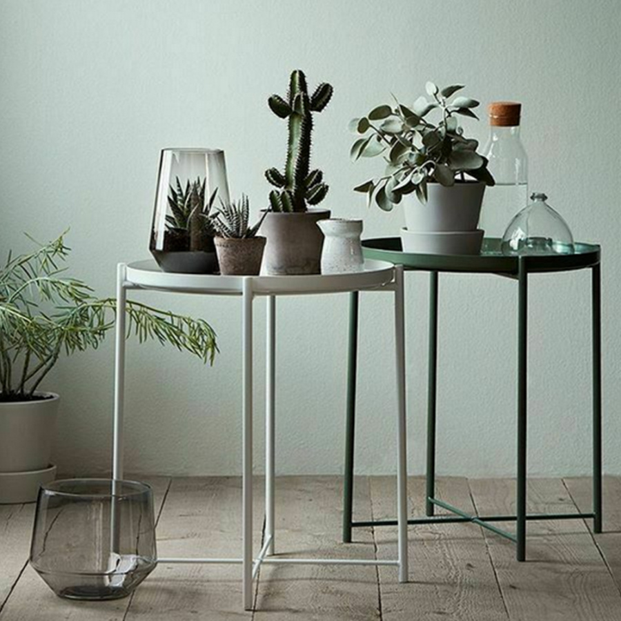 Materiál: kov Barva: bílá Rozměry (ŠxHxV): 45,5x45,5x52,5 cm pevná konstrukce kovová konstrukce S odnímatelnou tácem Možnost osadit tác hlubokou nebo rovnou stranou retro styl Dodávané v demontu