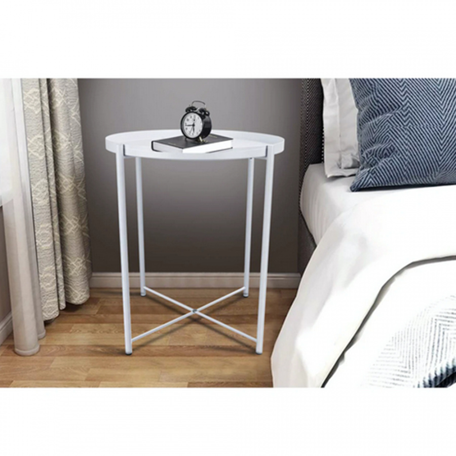 Příruční stolek s odnímatelnou tácem, bílá, TRIDER
