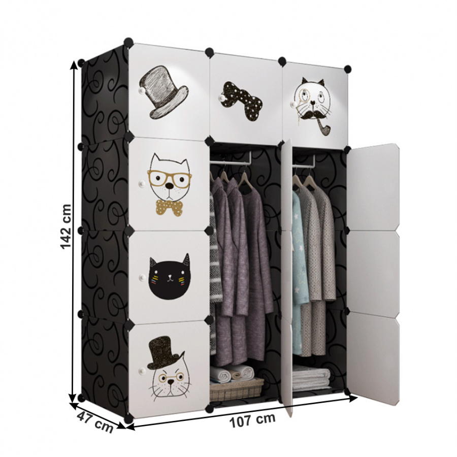 Výhodou modulárního typu nábytku je to, že si skříň můžete smontovat dle vlastních potřeb. Vnitřní rozložení skříně nemusí být takové jako na obrázku, věšákovou i policovou část si umíte rozvrhnout podle toho, jak právě potřebujete.