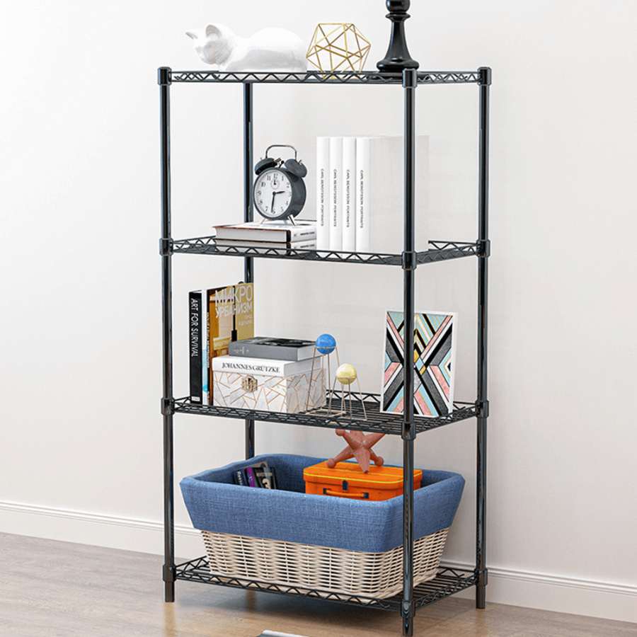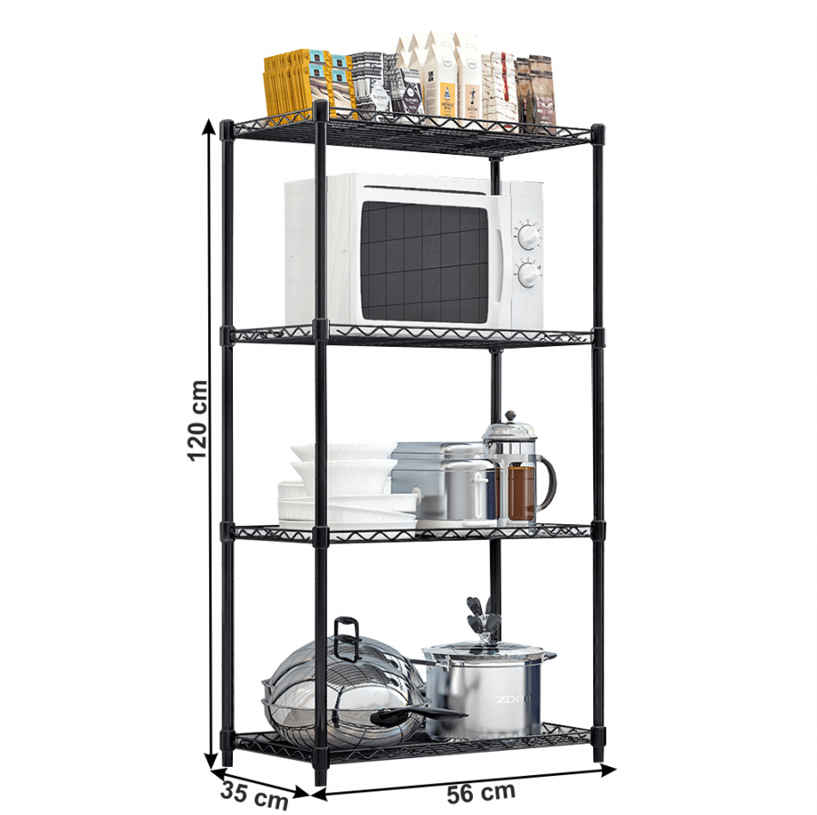 Materiál: kov Barva: černá Rozměry (ŠxHxV): 56x35x120 cm 4 poličky Nosnost: 40 kg Nosnost na jednu polici: 10 kg Dodávané v demontu