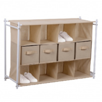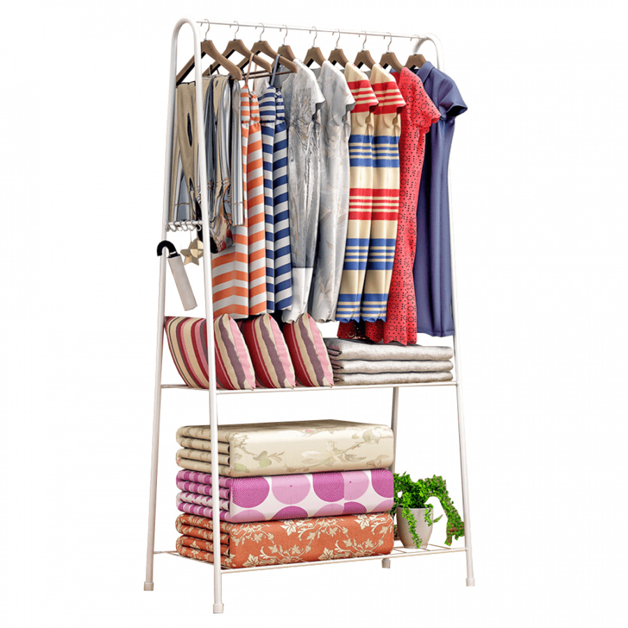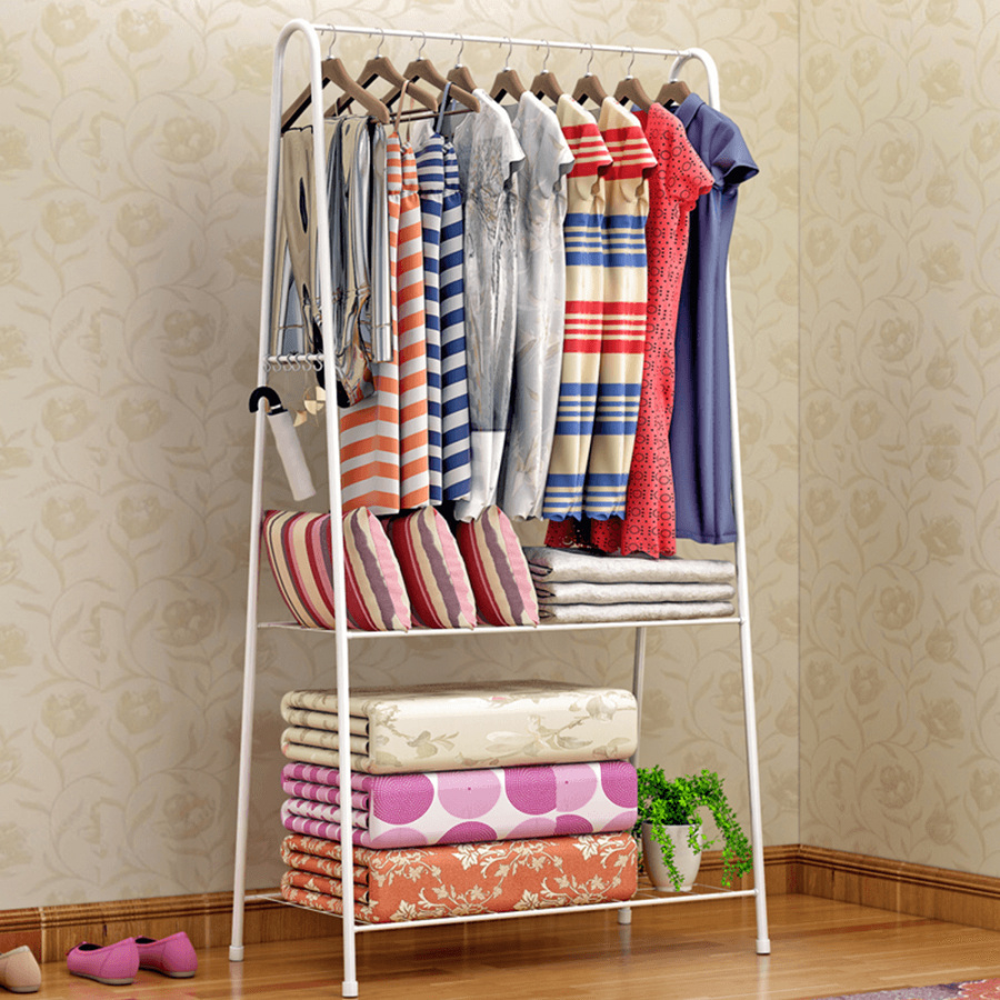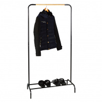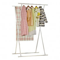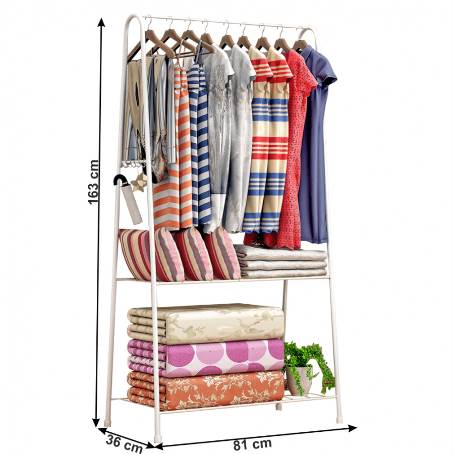 Materiál: kov Barva: bílá Rozměry (ŠxHxV): 81x36x136 cm věšáková tyč dvě police bez háčků Háčky nejsou součástí Na oblečení a doplňky Nosnost: 20 kg Dodávané v demontu