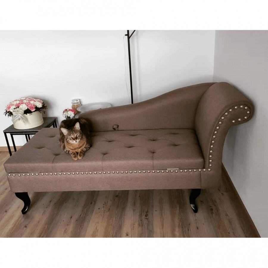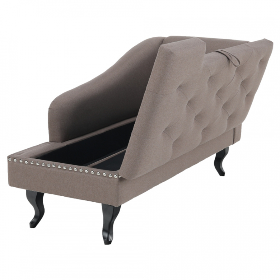 Elegantná lenoška s úložným priestorom Materiál: Látka/nožičky z masívneho dreva. Prevedenie: Hnedá/čierna. Rozmery ŠxHxV: 157x63x79 cm, výška sedenia: 45 cm. Dodávané v demonte.
