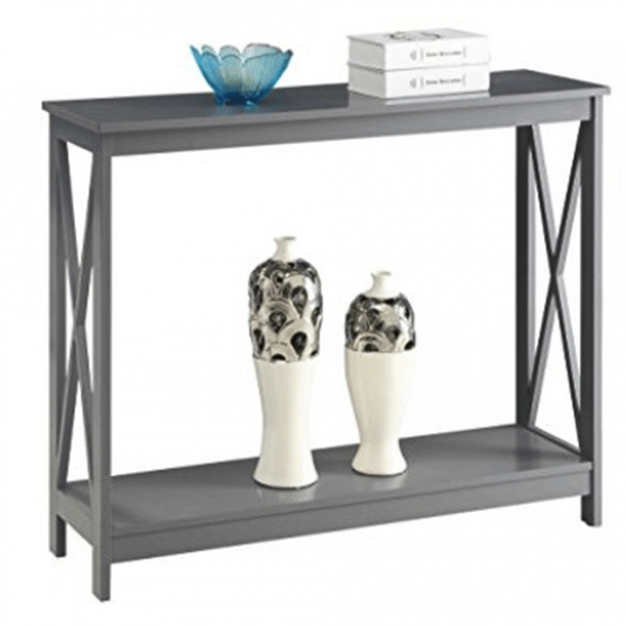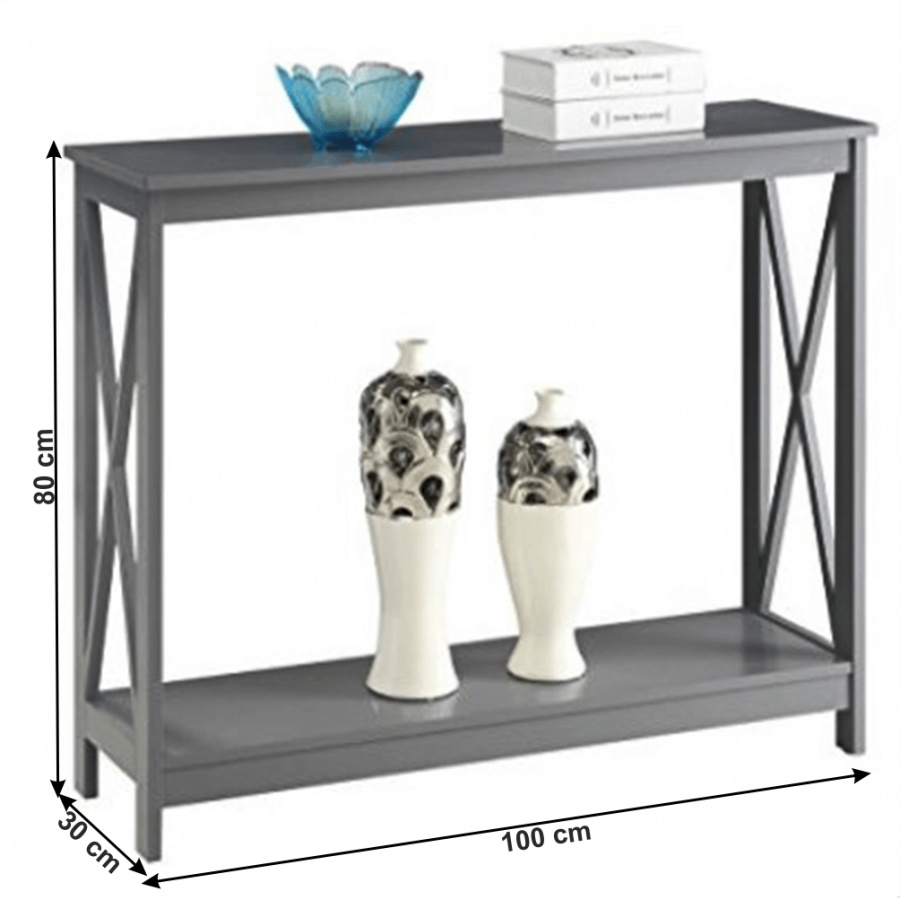 Materiál: MDF Barva: tmavě šedá Rozměry (ŠxHxV): 100x30x80 cm konzolový stolek S policí Dodávané v demontu.