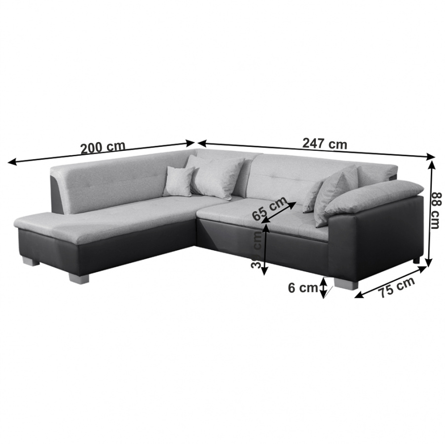 Rozměry: (ŠxHxV): 247x88/200x75 cm