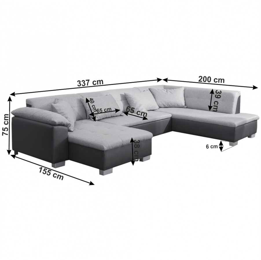 Elegantní rohová celočalouněná sedací souprava ve tvaru U, LEMIX U