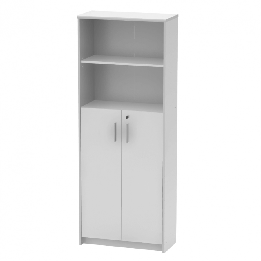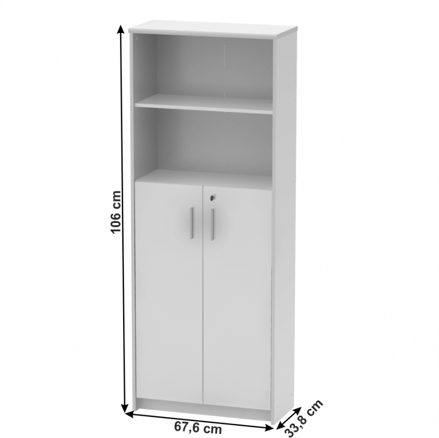 Kancelářský regál se skříňkou na zámek a otevřeným úložným prostorem JOHAN 2 NEW 10 Barevné provedení: bílá Materiál: DTD lamiovaná Rozměry (ŠxHxV): 72,5x33,8x186 cm Skříňka s dvířky na zámek Uvnitř skříňky dvě police Rozměry skříňky (ŠxHxV): 67,6x33,8x106 cm Otevřený úložný prostor jedna police Tloušťka vnitřních polic: 1,6 cm Nosnost polic: max 5 kg Tloušťka materiálu: 16/22 mm ABS hrany slovenský výrobek Dodávané v demontu