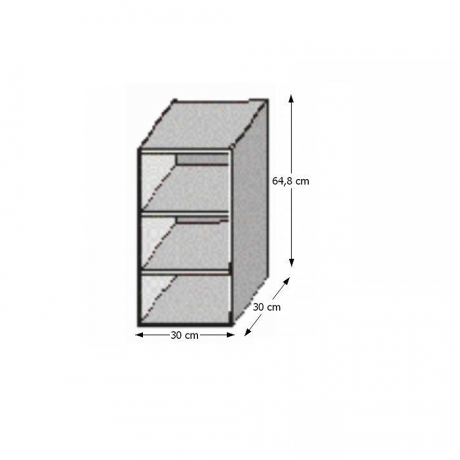 Horní policová skříňka JURA NEW I GO-30 Materiál: DTD laminovaná. Barevné provedení: rigolletto dark / rigolletto light / wenge. Rozměry (ŠxHxV): 30x30x64,8 cm Tloušťka materiálu: 16 mm Dodávána v demontu. Skříňky jsou dodávány včetně pracovní desky a dolní lišty, dřezová skříňka dodávána bez pracovní desky. Sektorové skříňky jsou dodávány včetně pracovní desky a spodní lišty. Možnost dokoupení univerzálního L / P dřezu v ceně 1.990 Kč.