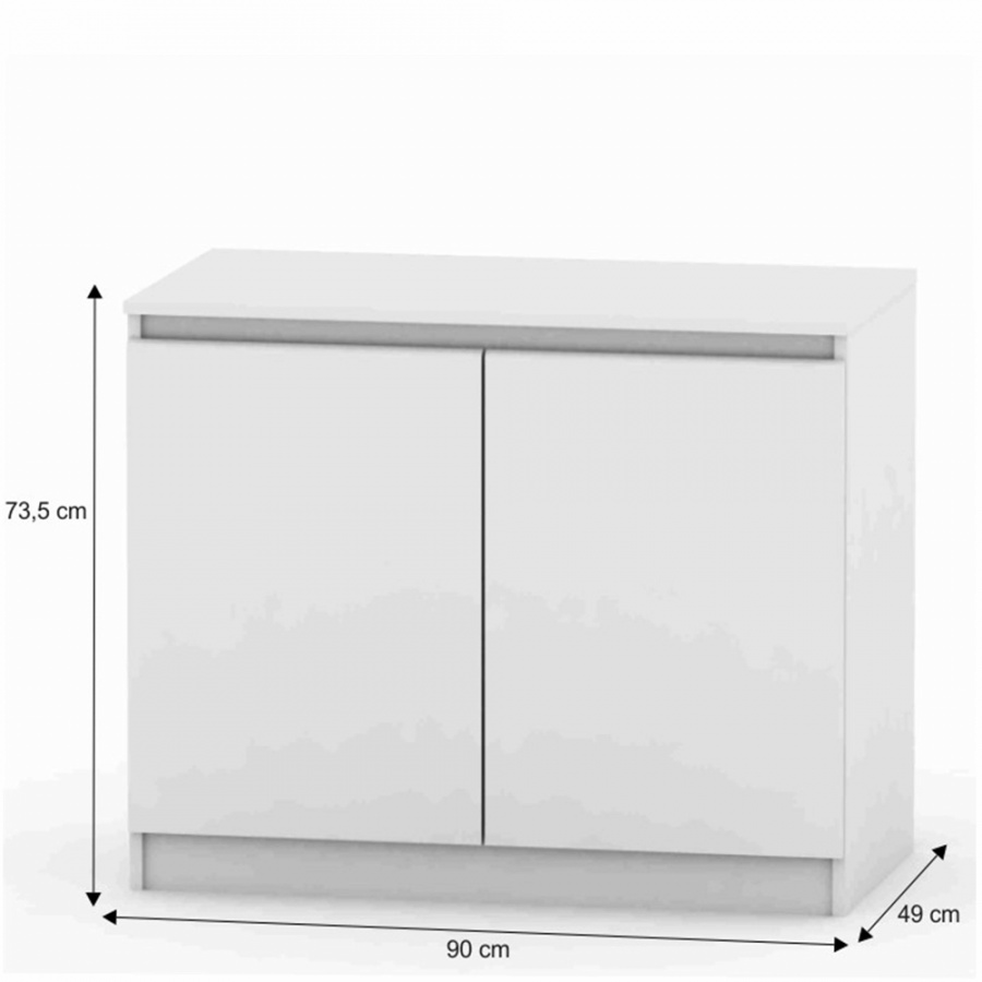 2 dveřová komoda HANY NEW 008 Materiál: DTD laminovaná Barva: bílá Rozměry (ŠxHxV): 90x49x73,5 cm Tloušťka materiálu: 16 mm ABS hrany Kvalitní slovenský výrobek. Dodávané v demontu.