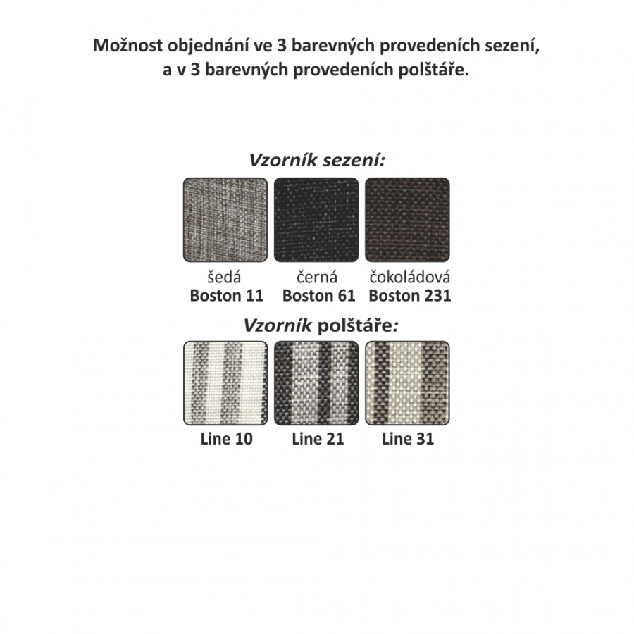 Možnost objednání z vyobrazených barevných provedení v ceně 10.470 Kč. Upozorňujeme, že při objednávkách na nábytek v jiném barevném provedení, jak máme běžně skladem, neumíme zaručit doručení do Vánoc. Totéž platí i při nábytku označeném na objednávku. Doba dodání 14-17 týdnů.