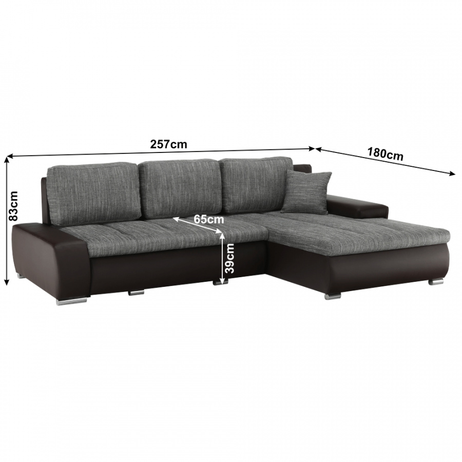 Rozměry (ŠxHxV): 257x180x83 cm, spaní: (ŠxD): 149x206 cm