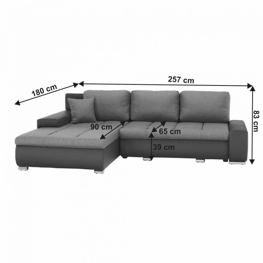 Rozměry (ŠxHxV): 257x180x83 cm, spaní: (ŠxD): 149x206 cm