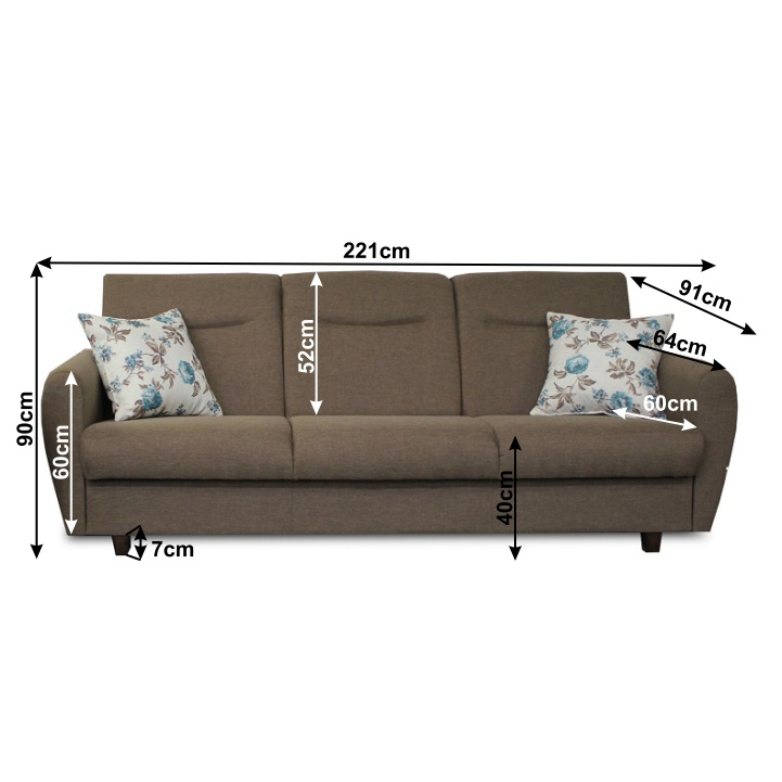Rozměry v cm (ŠxHxV): 3-sed 221x91x90,