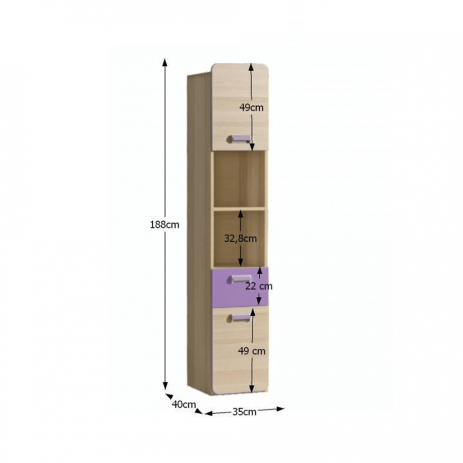 Rozměry (ŠxHxV): 35x40x188 cm.