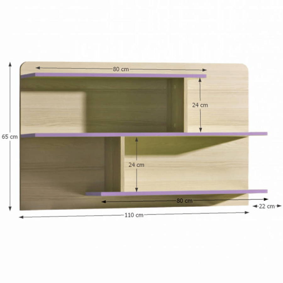 L 8 - kombinovaná police. Materiál: DTD lamino. Barevné provedení: jasan / fialová, ABS hrany. Rozměry (ŠxHxV): 110x22x65 cm. Tloušťka materiálu: 16 mm Dodávané v demontu.