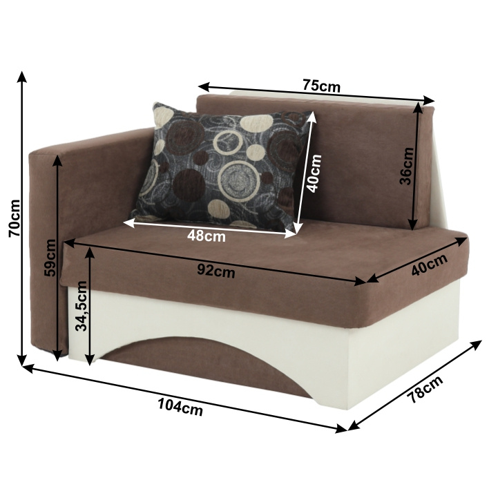 Rozkládací křeslo KUBOŠ Materiál: látka Altara Barva: hnědá / béžová Rozměry (ŠxHxV): 104x78x70 cm Levé provedení. Plocha na spaní ŠxD: 75x185 cm S jedním bankúšom. Dodávané v demontu. Vybrat si můžete také z jiných barevných provedení, a to ze 7 barevných provedeních látky alova v ceně 6.290 Kč.Upozorňujeme, že při objednávkách na nábytek v jiném barevném provedení, jak máme běžně skladem, neumíme zaručit doručení do Vánoc. Totéž platí i při nábytku označeném na objednávku. Doba dodání 14-17 týdnů.