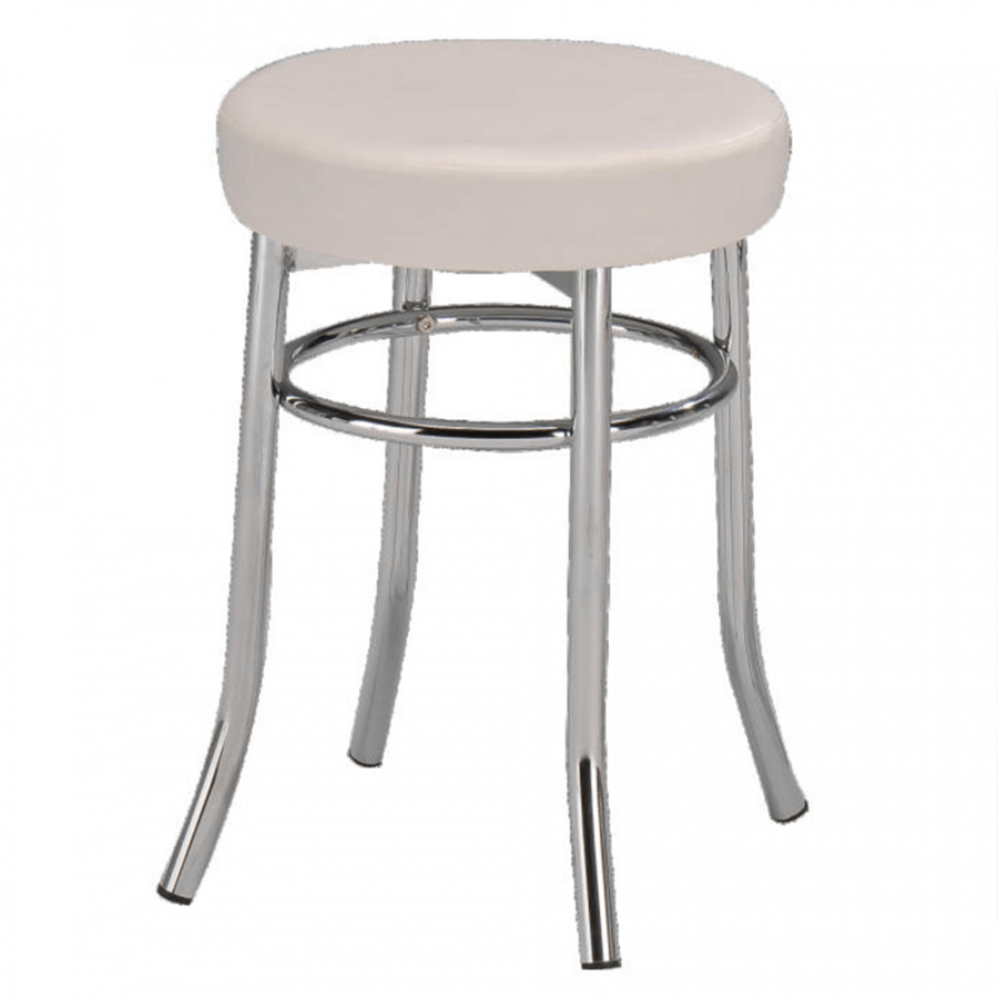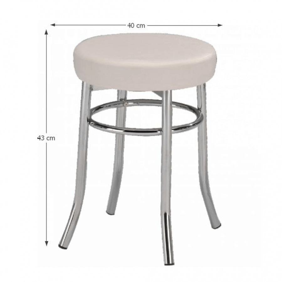 Taburet IRENA, kov chrom / ekokůže bílá Výška sedu: 43 cm, průměr: 40 cm. Dodávané v demontu.