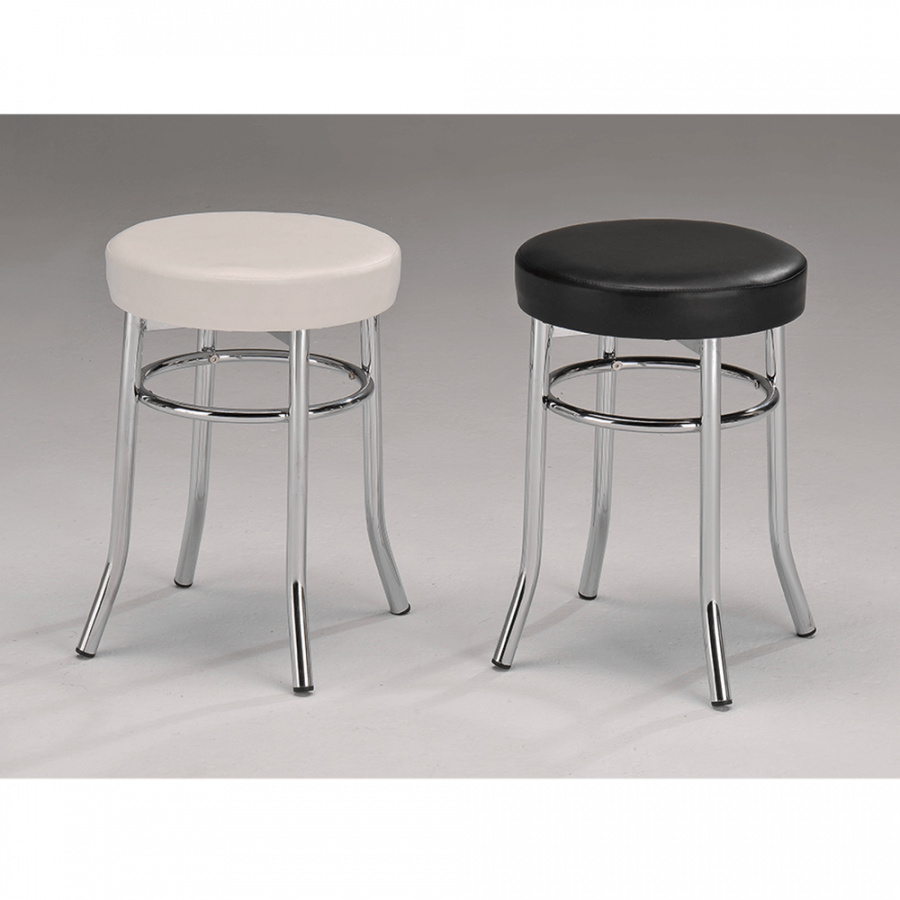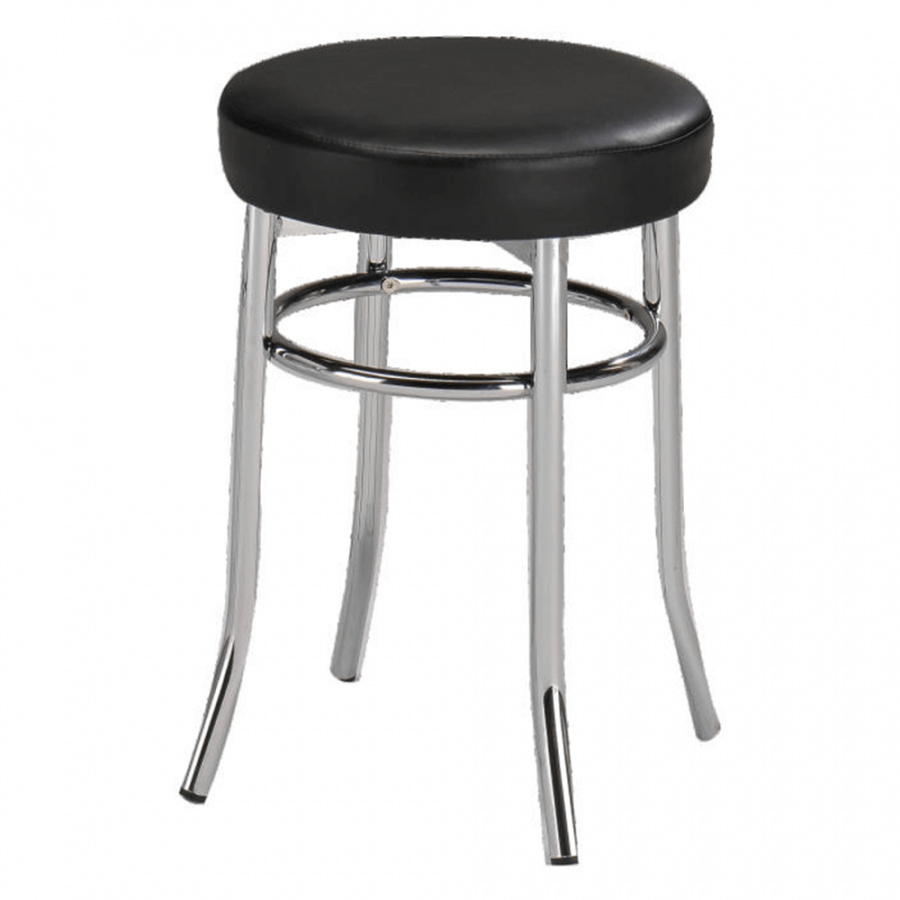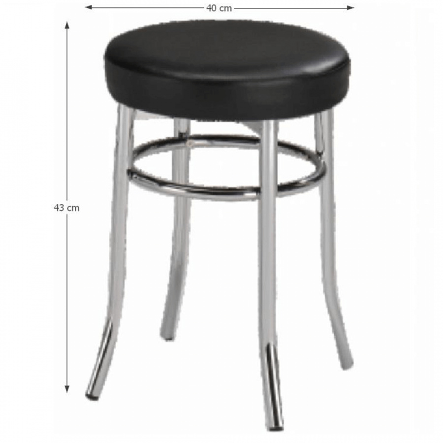 taburetka, kov chrom / ekokůže černá, výška sedu: 43 cm, průměr: 40 cm. Dodávána v demontu.