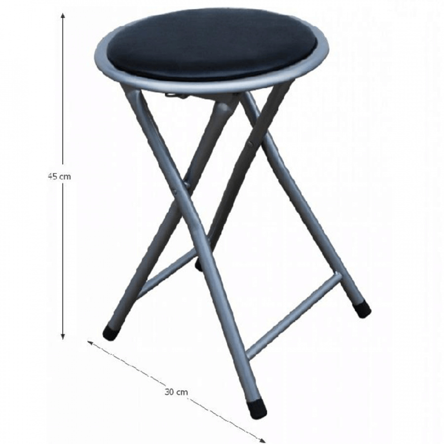 Skládací taburet / stolička IRMA Materiál: kov / ekokůže, Barva: stříbrná / černá, rozměry: (Průměr x V) 30x 45 cm, nosnost: 80 kg. Dodávané v monte.