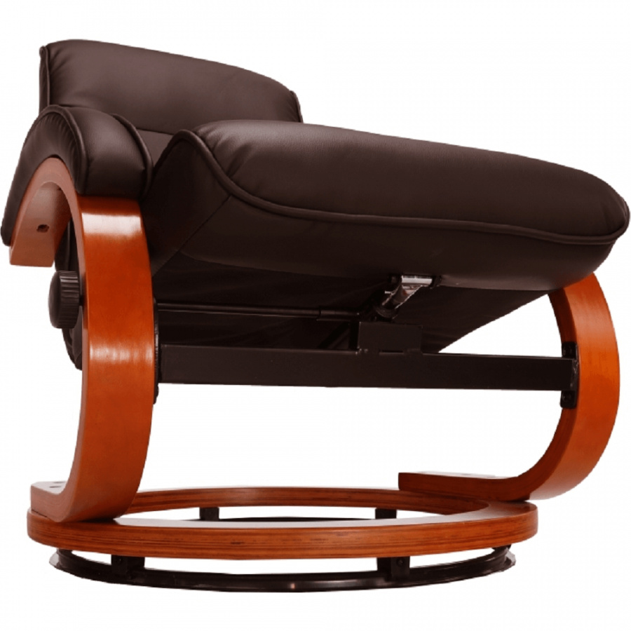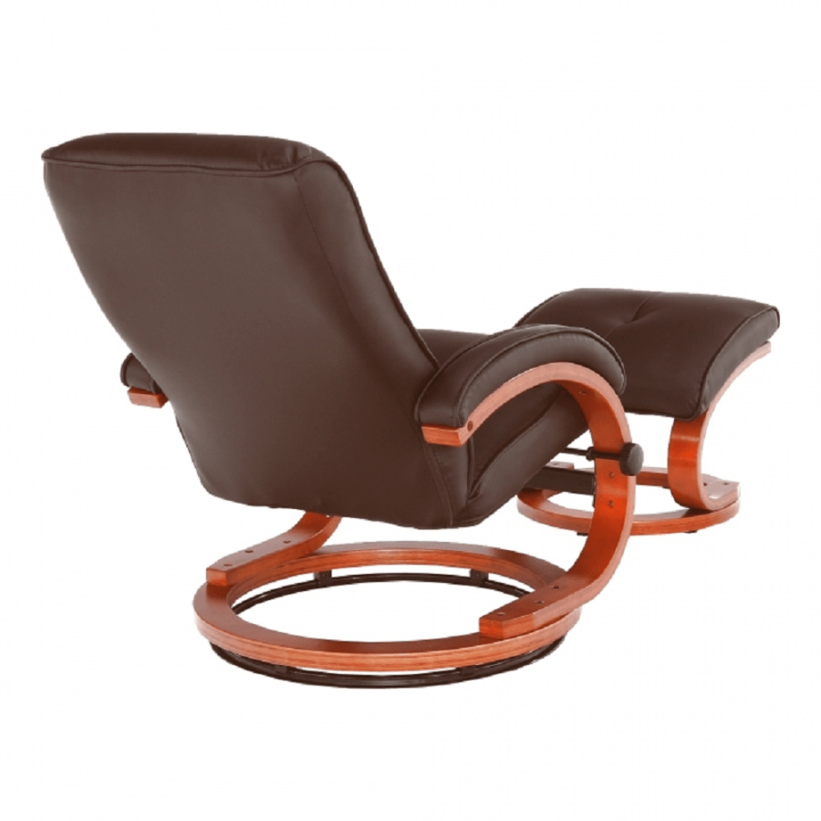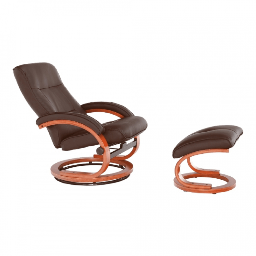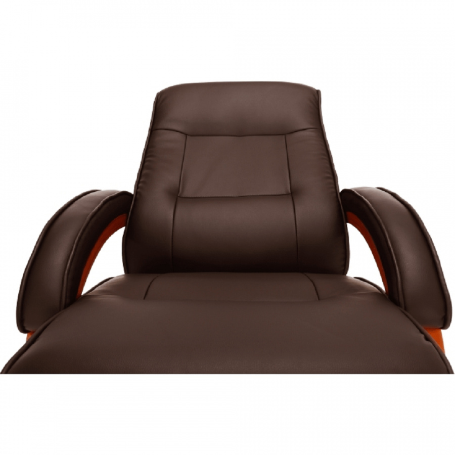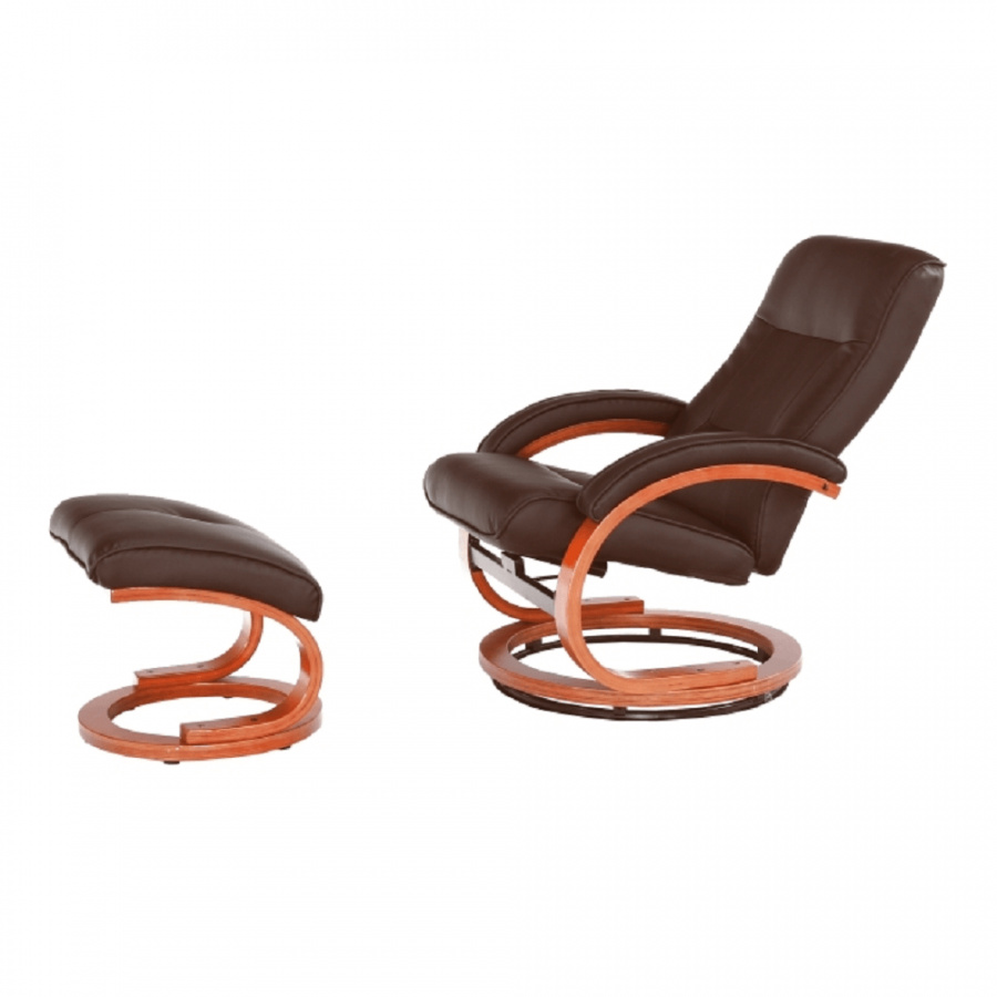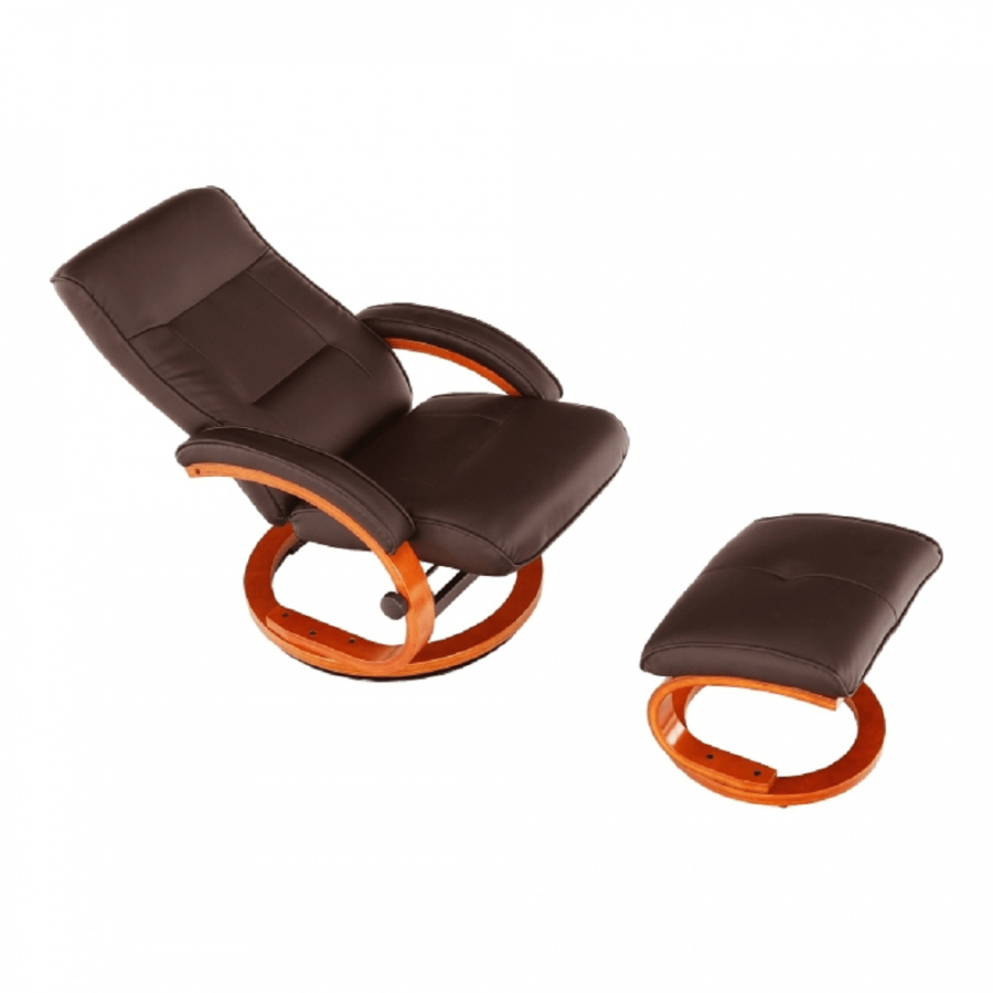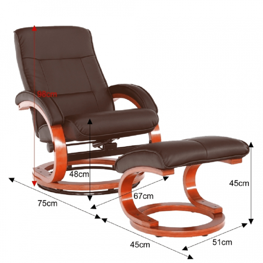 Polohovatelné relaxační křeslo RYAN Materiál: textilní kůže PU / dřevo Barva: tmavohnědá / olše Rozměry (ŠxHxV): 67x75x98 cm Výška křesla po sklopení opěradla: 88cm Hloubka sedáku po sklopení opěradla: 108 cm Výška sedu: 48cm Rozměry podnož (ŠxHxV): 51x45x45cm Sklopení opěrky o 145 stupňů Nosnost: 150 kg. Dodávané v demontu.
