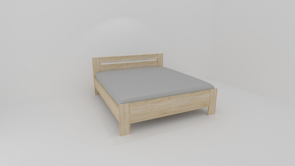 Jednou z výhod je volný prostor pod postelí a čelo v příjemné výšce. To vše zaručuje zdravý a klidný spánek našich zákazníků. Čelo a nohy dvoulůžka jsou vyrobeny v síle lamina 25mm, bočnice 18 či 25mm. Výběr z několika akčních dekorů.