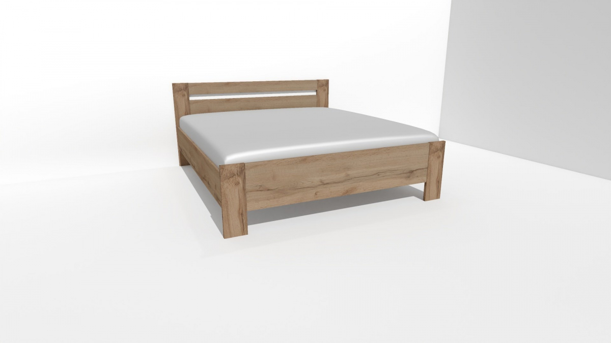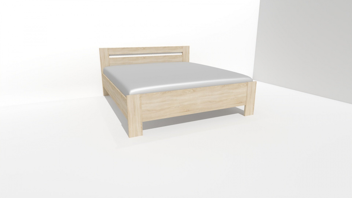 Jednou z výhod je volný prostor pod postelí a čelo v příjemné výšce. To vše zaručuje zdravý a klidný spánek našich zákazníků. Čelo a nohy dvoulůžka jsou vyrobeny v síle lamina 25mm, bočnice 18 či 25mm. Výběr z několika akčních dekorů. Kvalitní kování a spojovací materiál je bez použití plastových součástek, vyjma ochranných krytek.