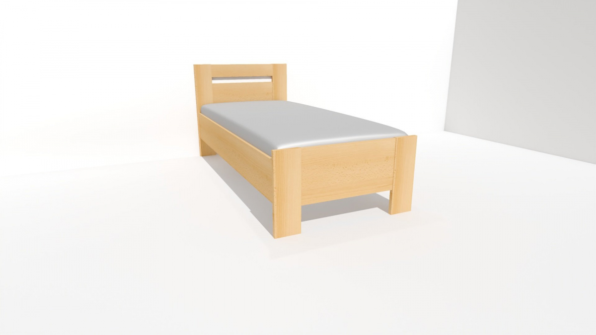 Jednou z výhod je volný prostor pod postelí a čelo v příjemné výšce. To vše zaručuje zdravý a klidný spánek našich zákazníků. Čelo a nohy dvoulůžka jsou vyrobeny v síle lamina 25mm, bočnice 18 či 25mm. Výběr z několika akčních dekorů. Kvalitní kování a spojovací materiál je bez použití plastových součástek, vyjma ochranných krytek.