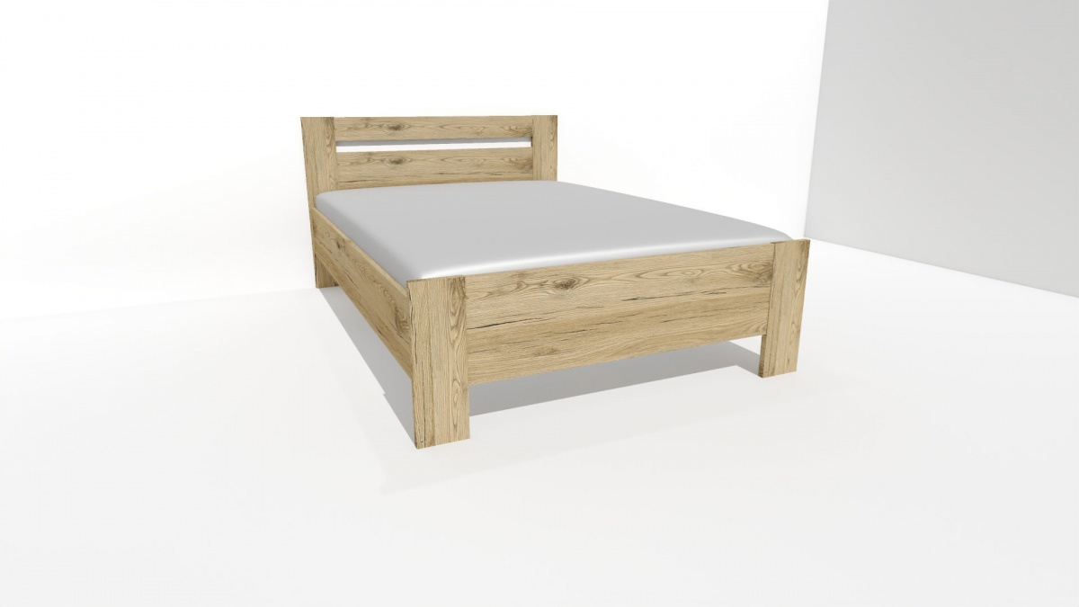Jednou z výhod je volný prostor pod postelí a čelo v příjemné výšce. To vše zaručuje zdravý a klidný spánek našich zákazníků. Čelo a nohy dvoulůžka jsou vyrobeny v síle lamina 25mm, bočnice 18 či 25mm. Výběr z několika akčních dekorů.